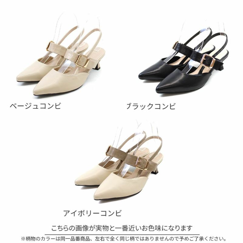 ・太ベルト×華奢バックストラップの対照的な組み合わせがモードでエレガントなパンプス。