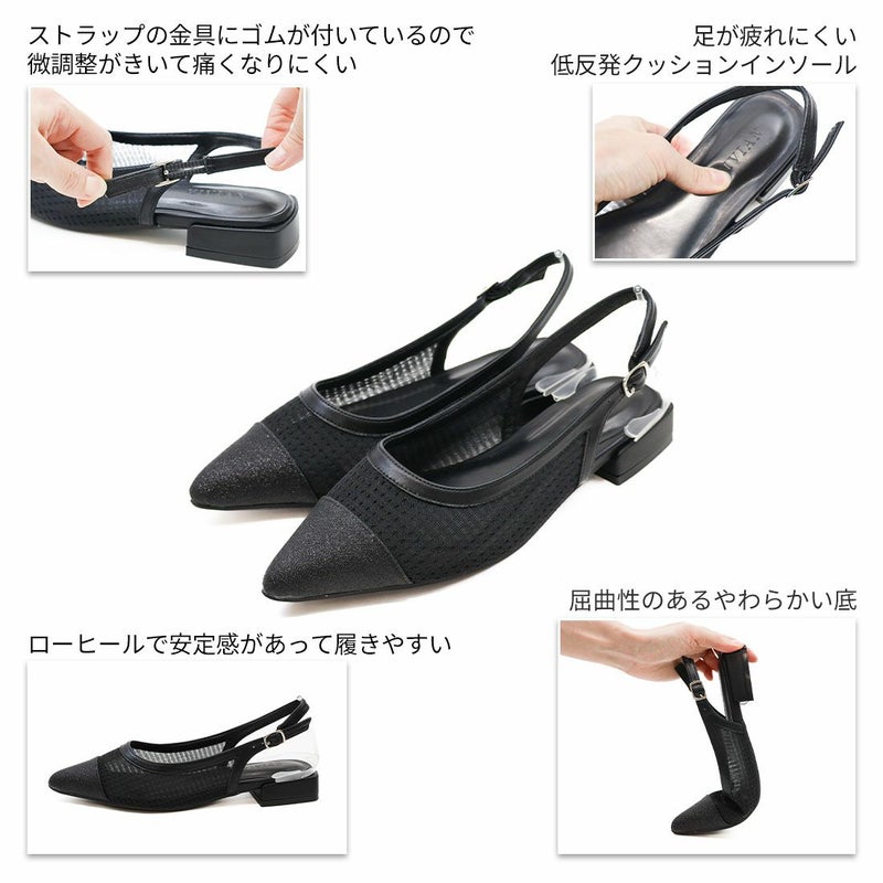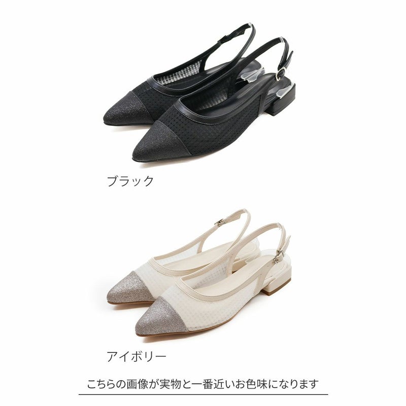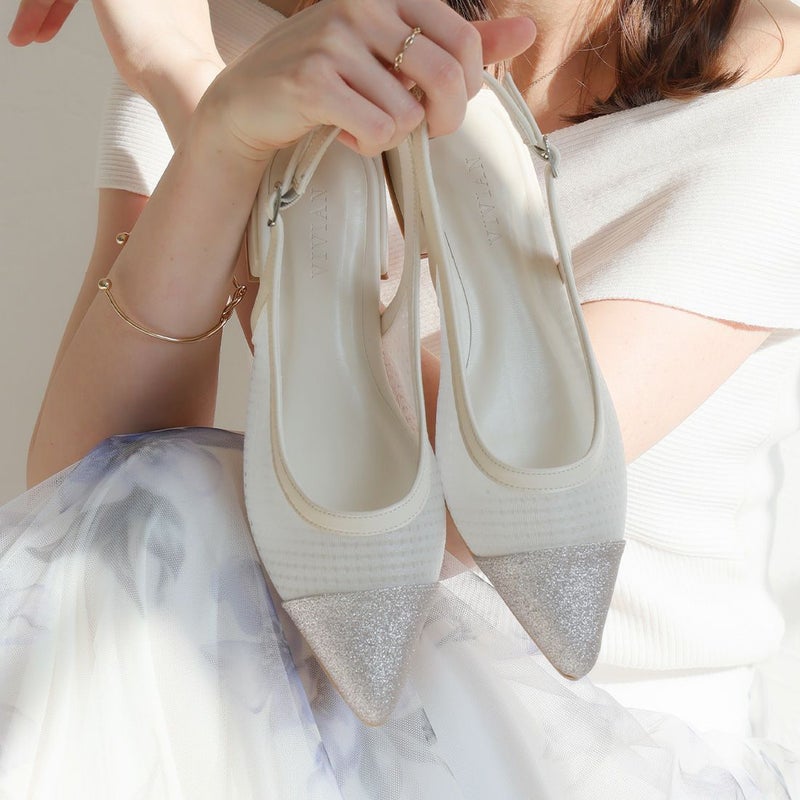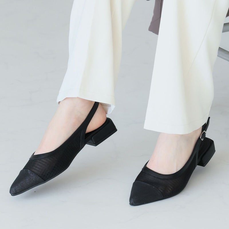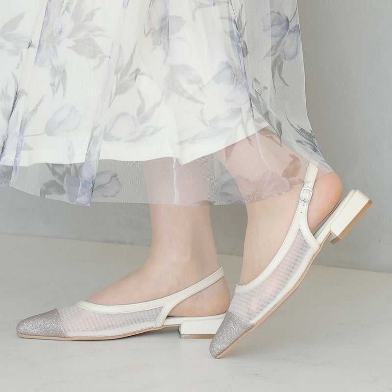 ・キラキラのグリッター×上品なチュールメッシュの異素材の切り替えデザインがポイントのスリングバックパンプス!