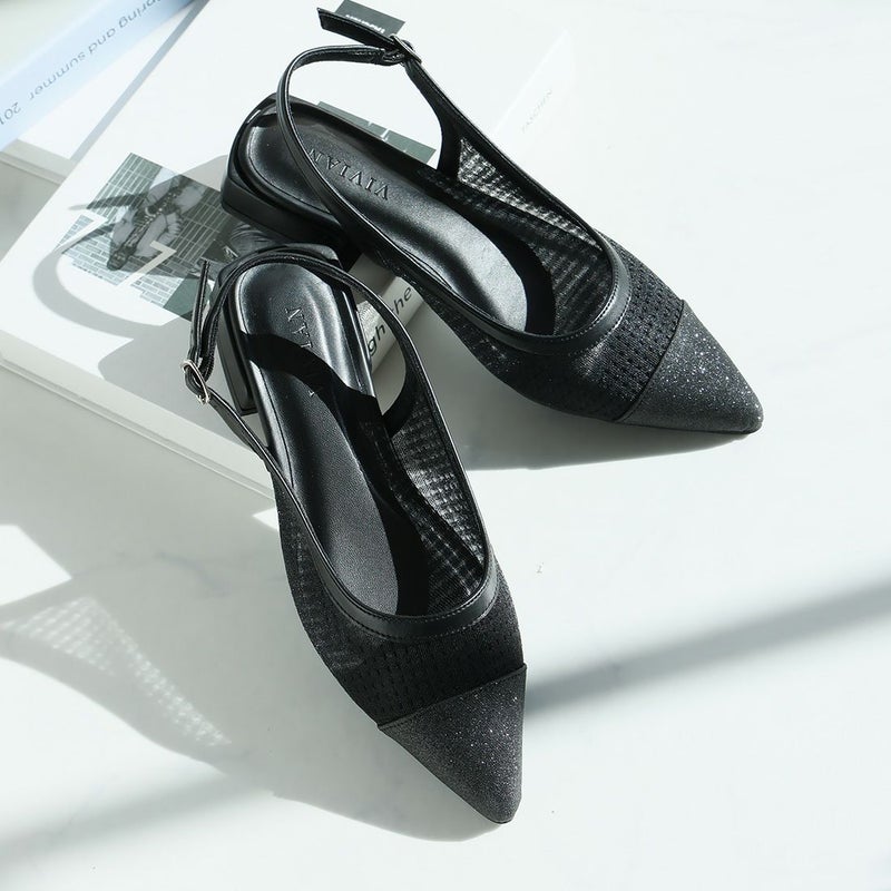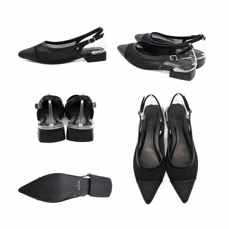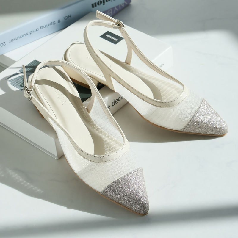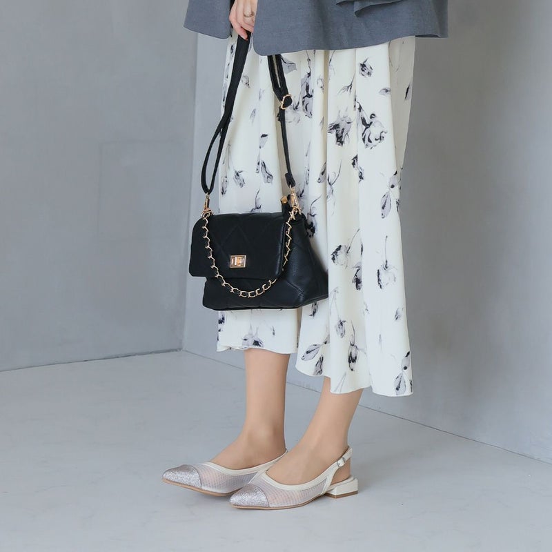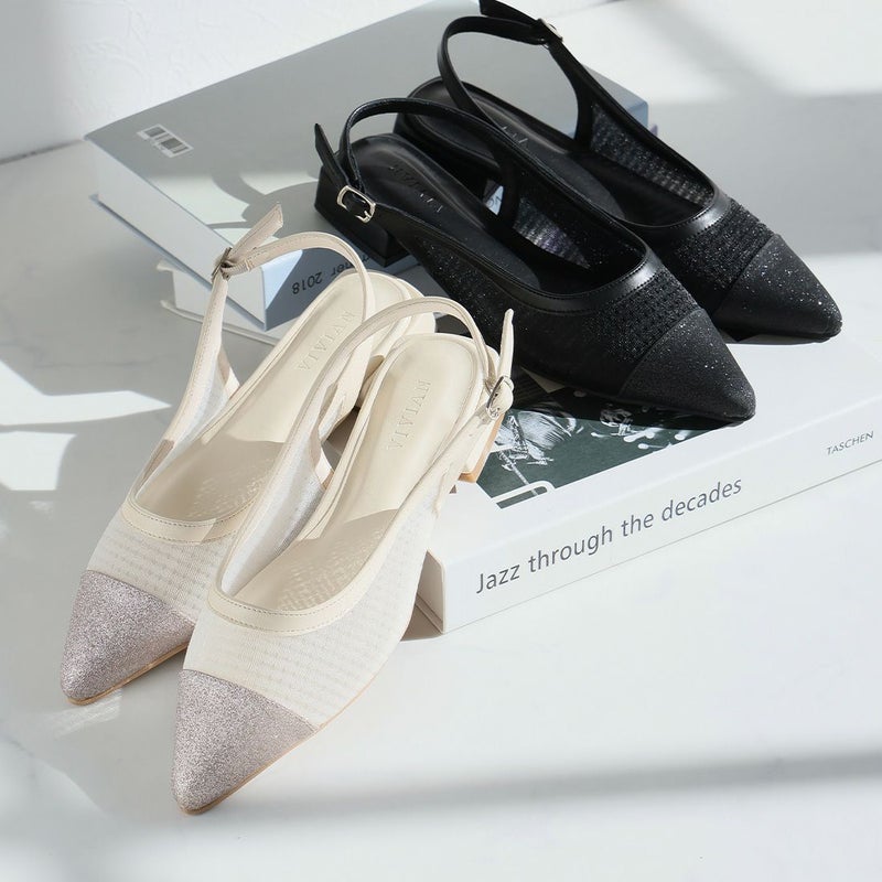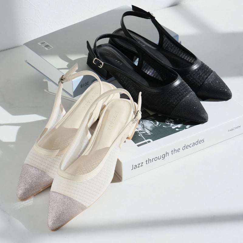 ・キラキラのグリッター×上品なチュールメッシュの異素材の切り替えデザインがポイントのスリングバックパンプス!