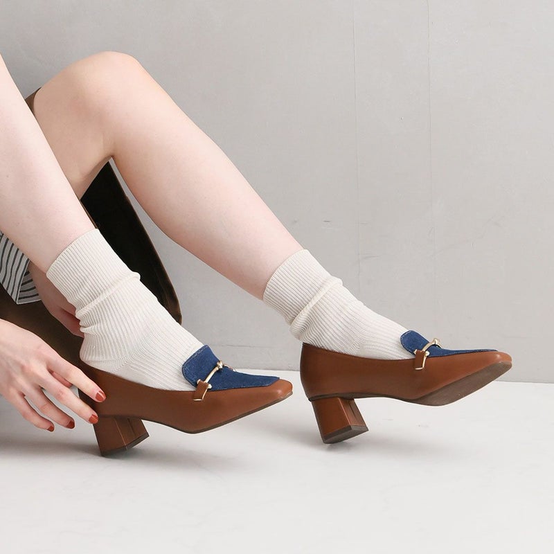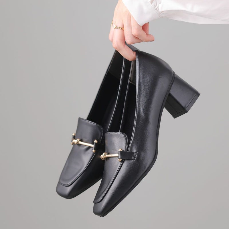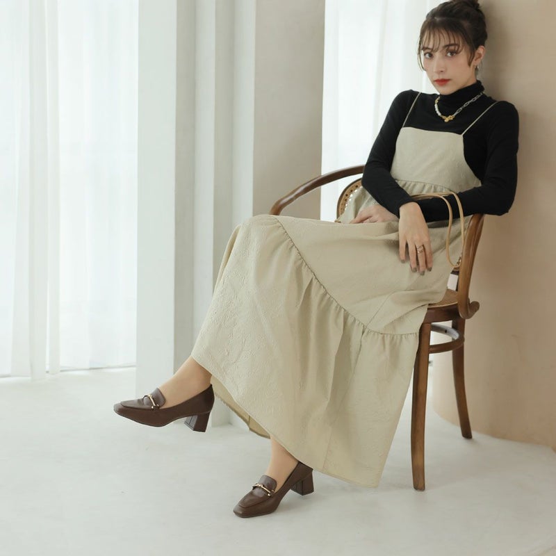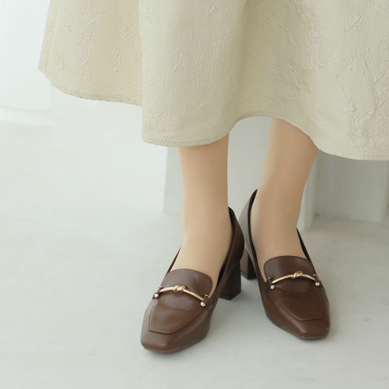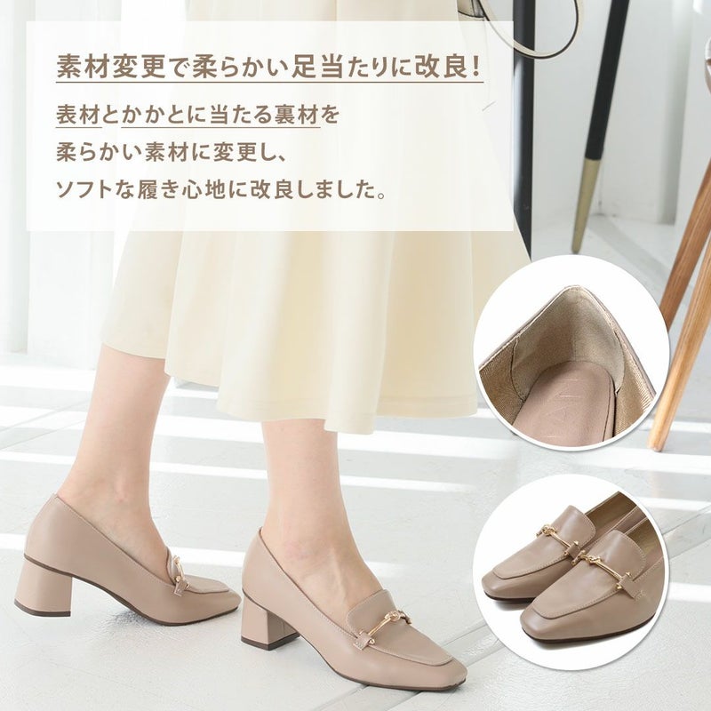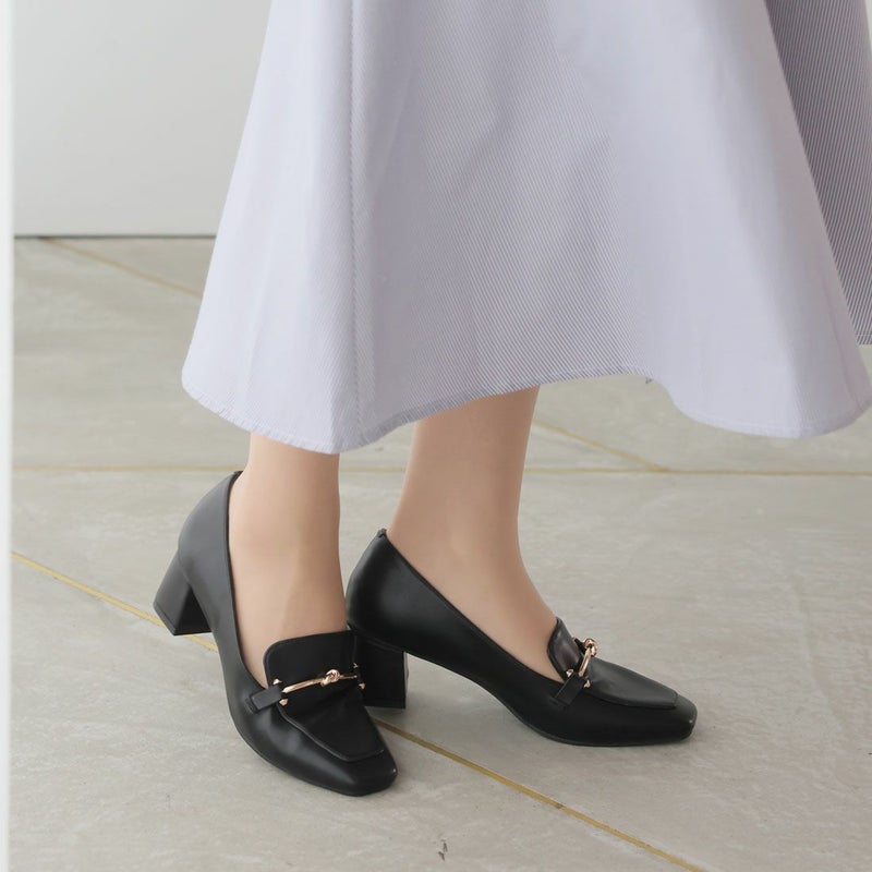・スクエアトゥ×ブロックヒールで甘くなりすぎない上品フォルム