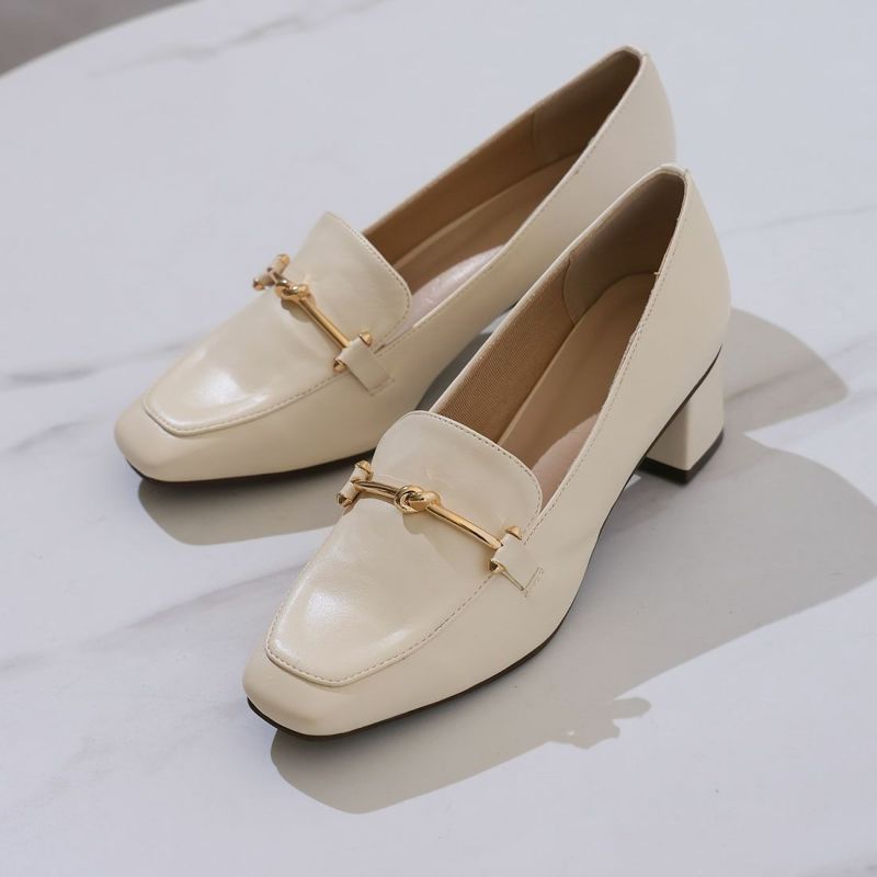・スクエアトゥ×ブロックヒールで甘くなりすぎない上品フォルム