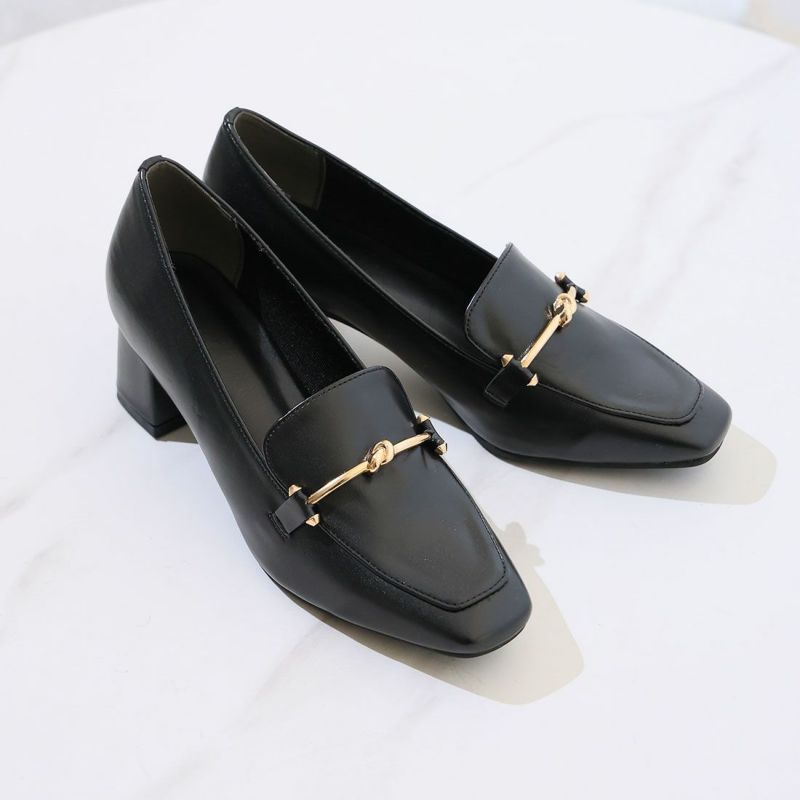 ・スクエアトゥ×ブロックヒールで甘くなりすぎない上品フォルム