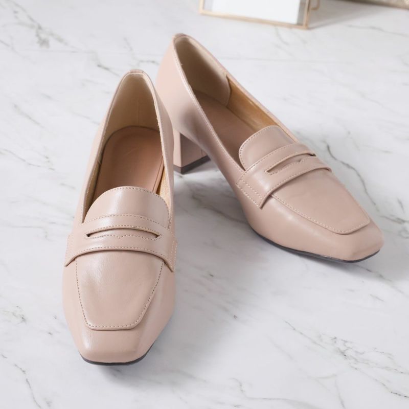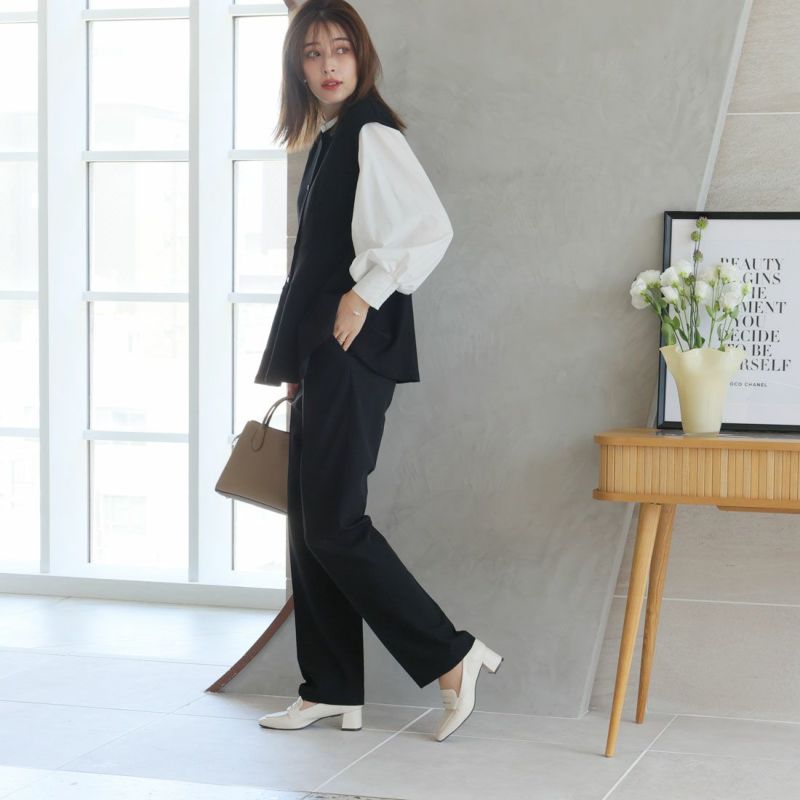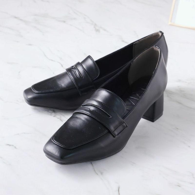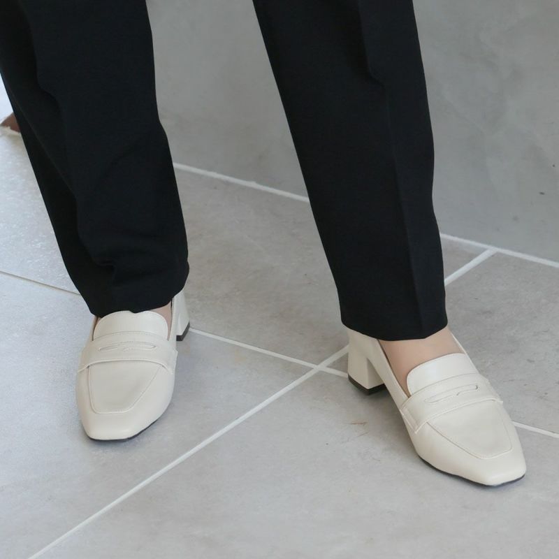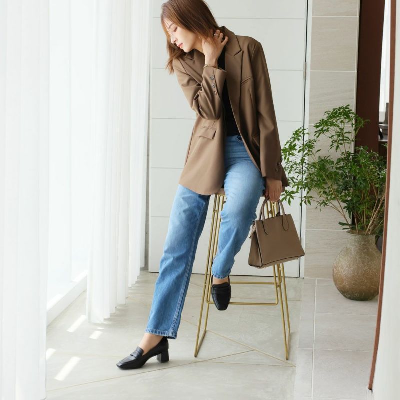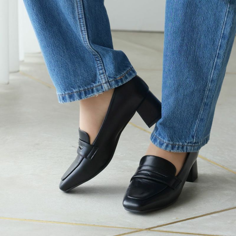 ・スクエアトゥ×ブロックヒールで甘くなりすぎない上品フォルム。