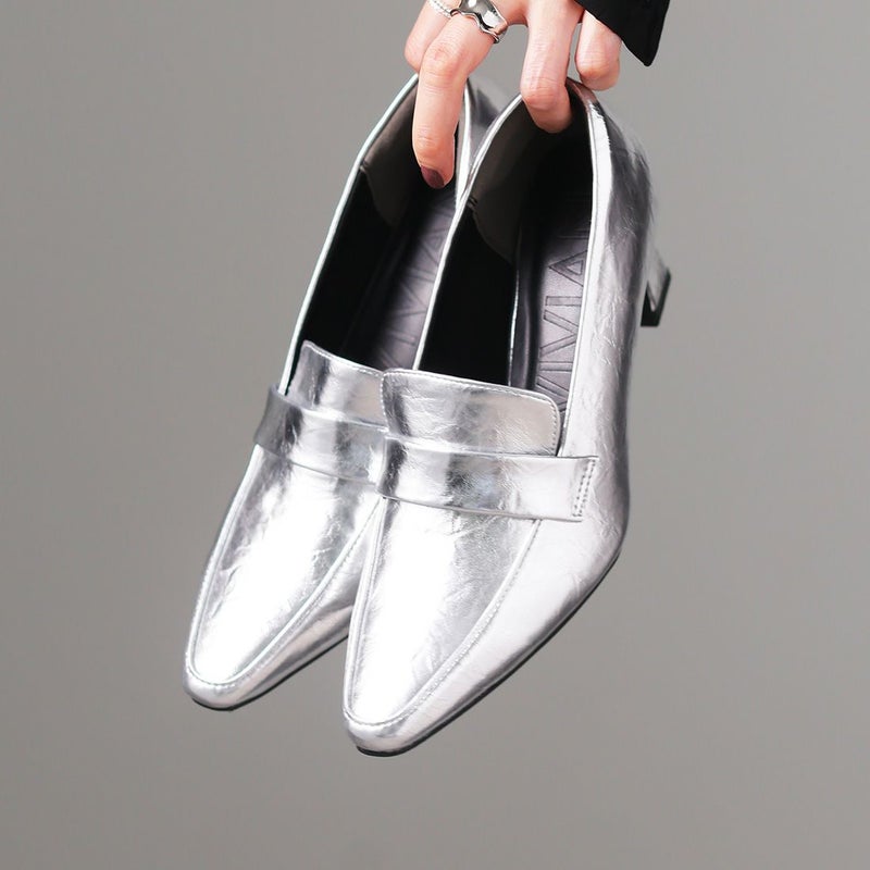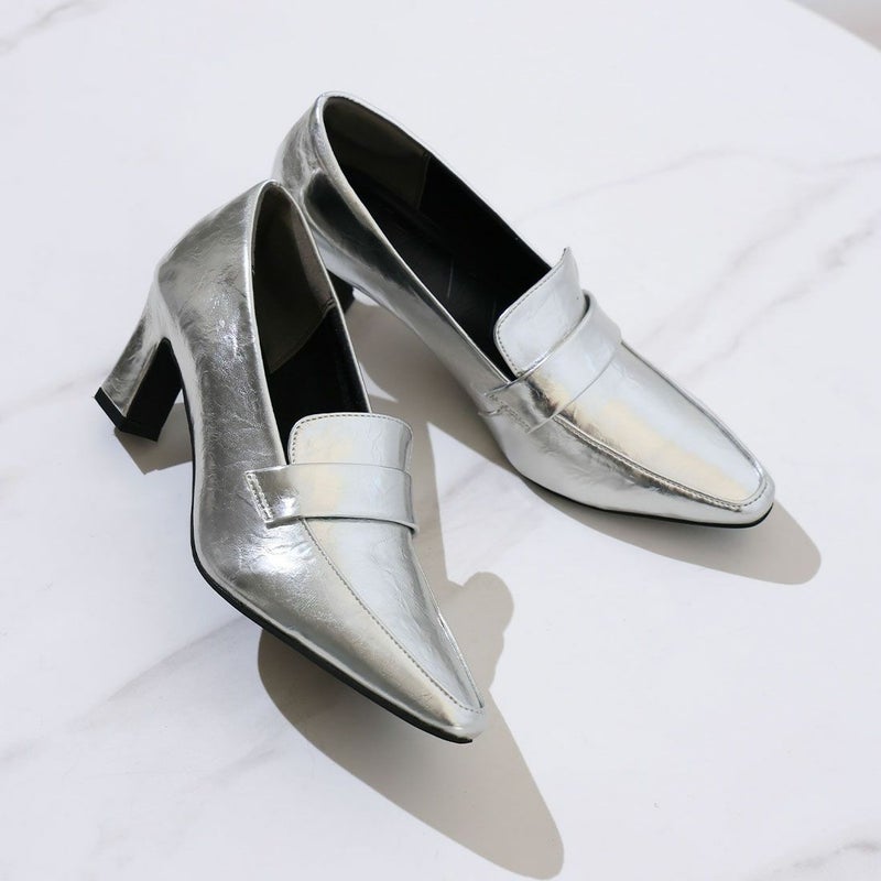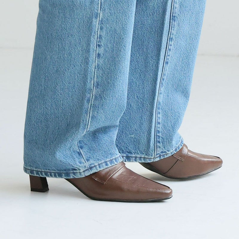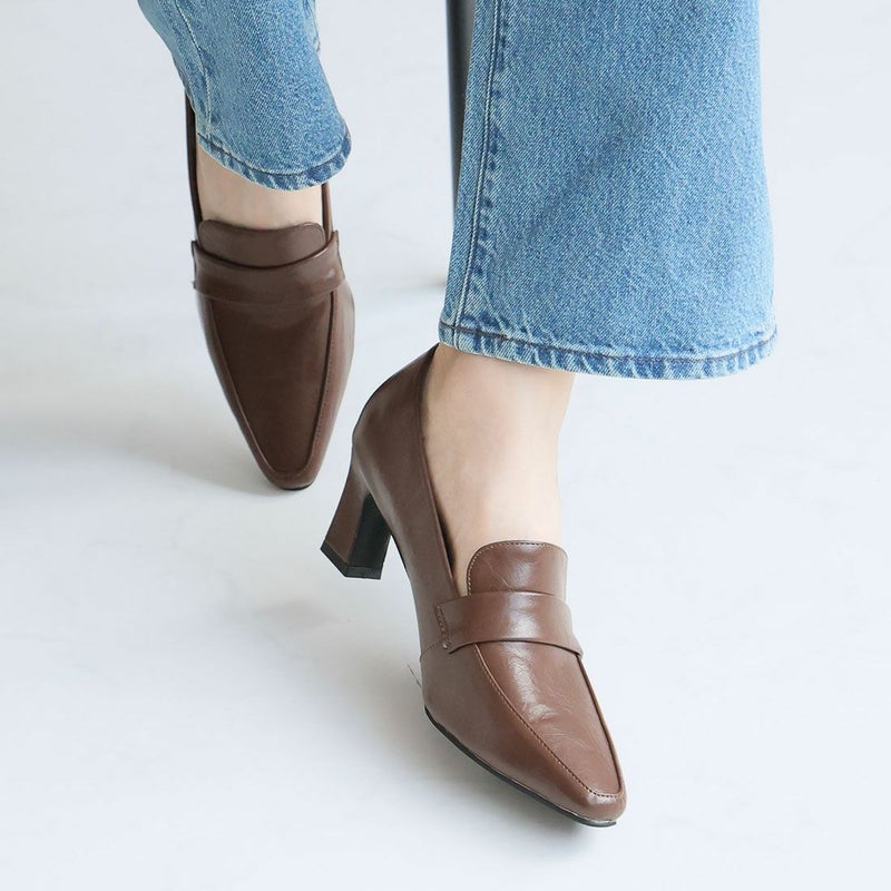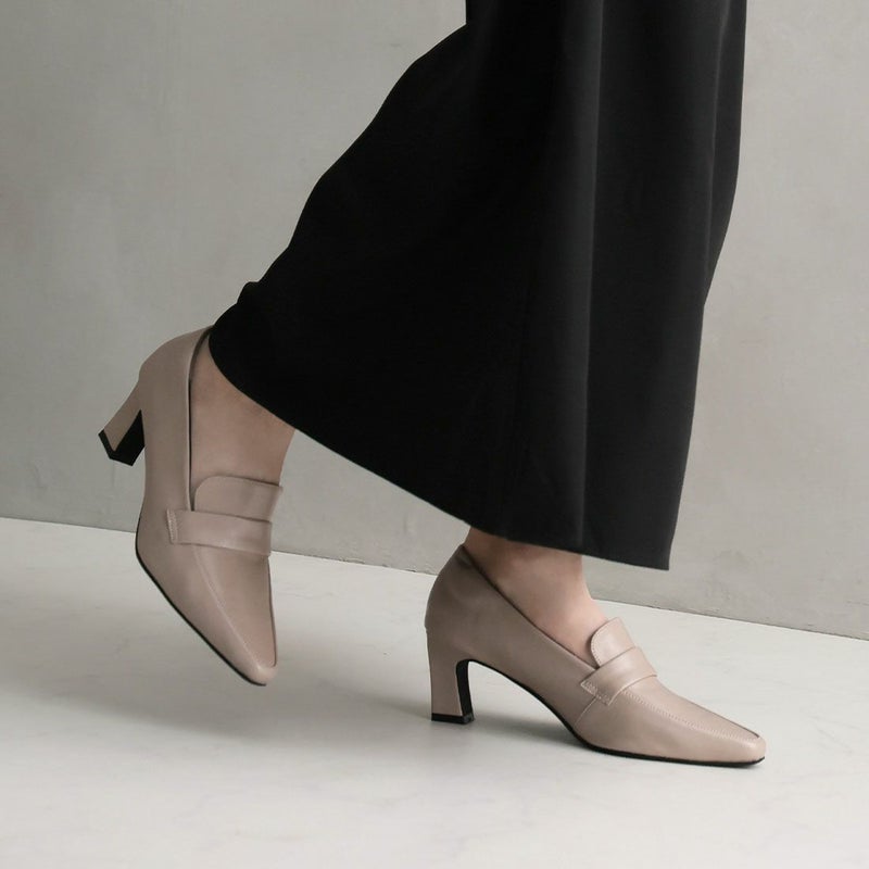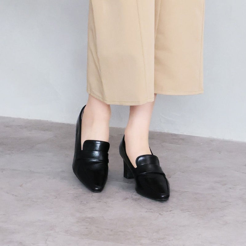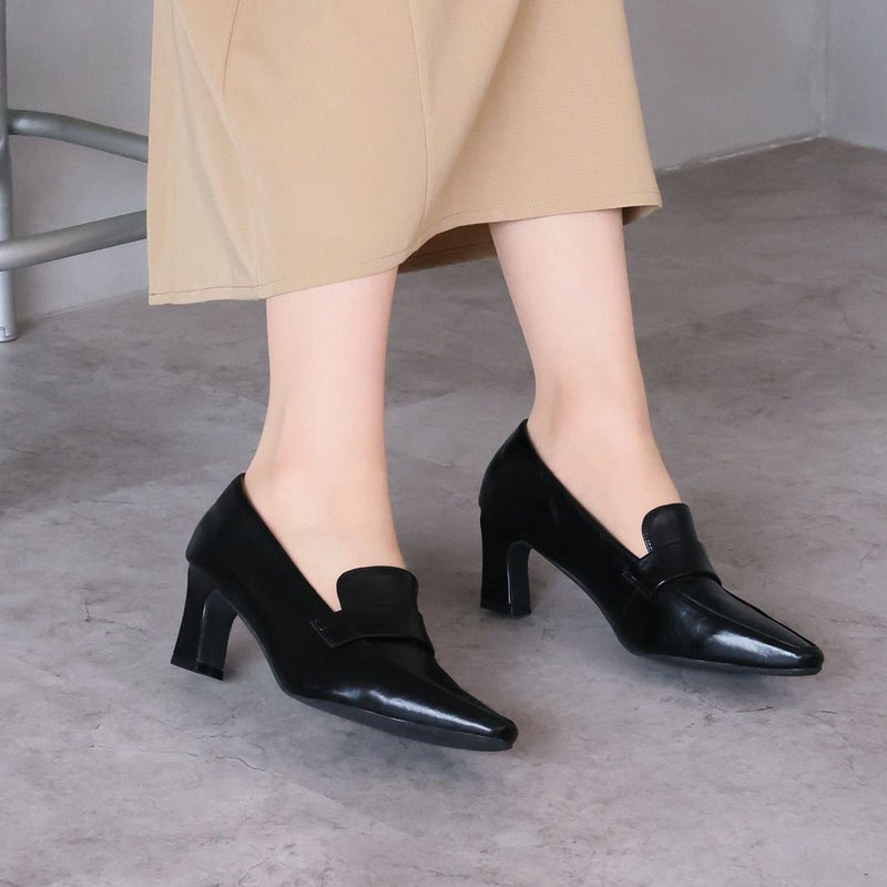 VIVIAN 【2026年春新色】スクエアトゥデザインヒールローファーパンプス
