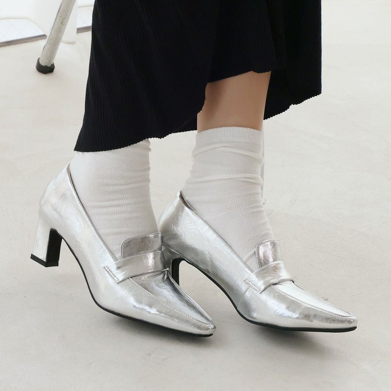 ・先端だけをちょっぴりカットしたようなスクエアトゥは、ポインテッドトゥのようなクールさとトレンド感もあり◎