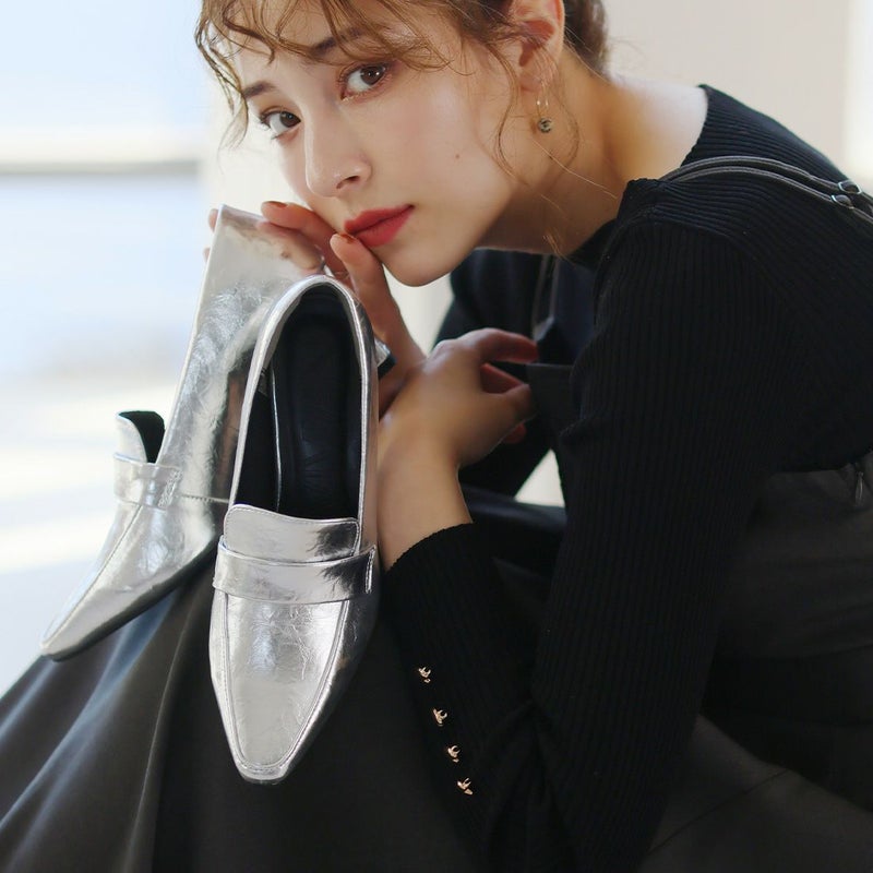 ・定番ローファーデザインもシワ加工素材でトレンド感アップ!