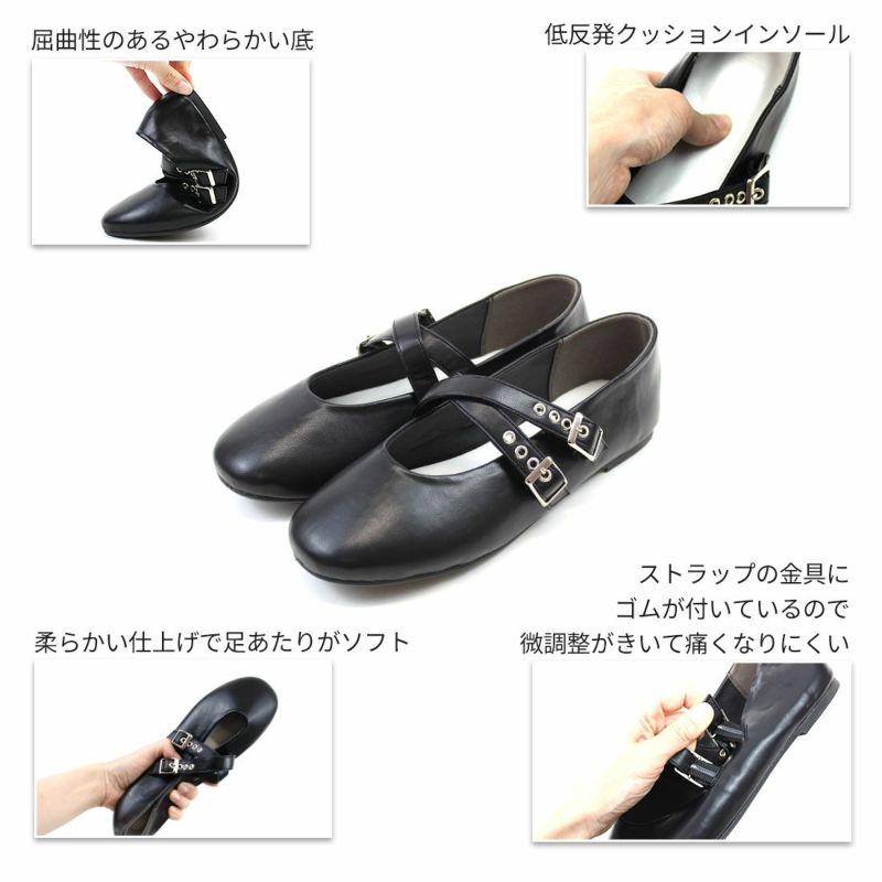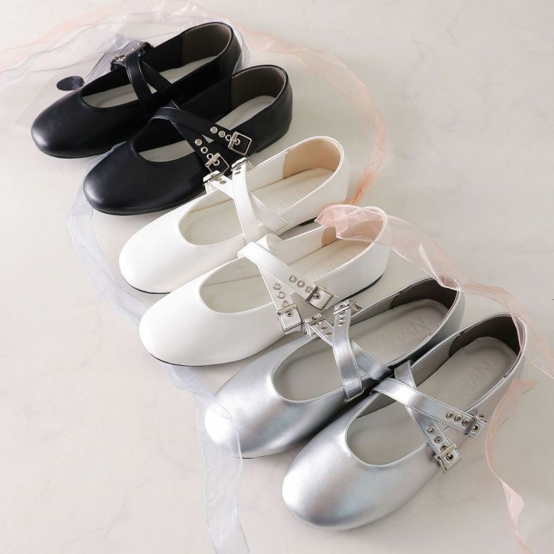・クロスのダブルベルトがアクセントのフラットシューズ!