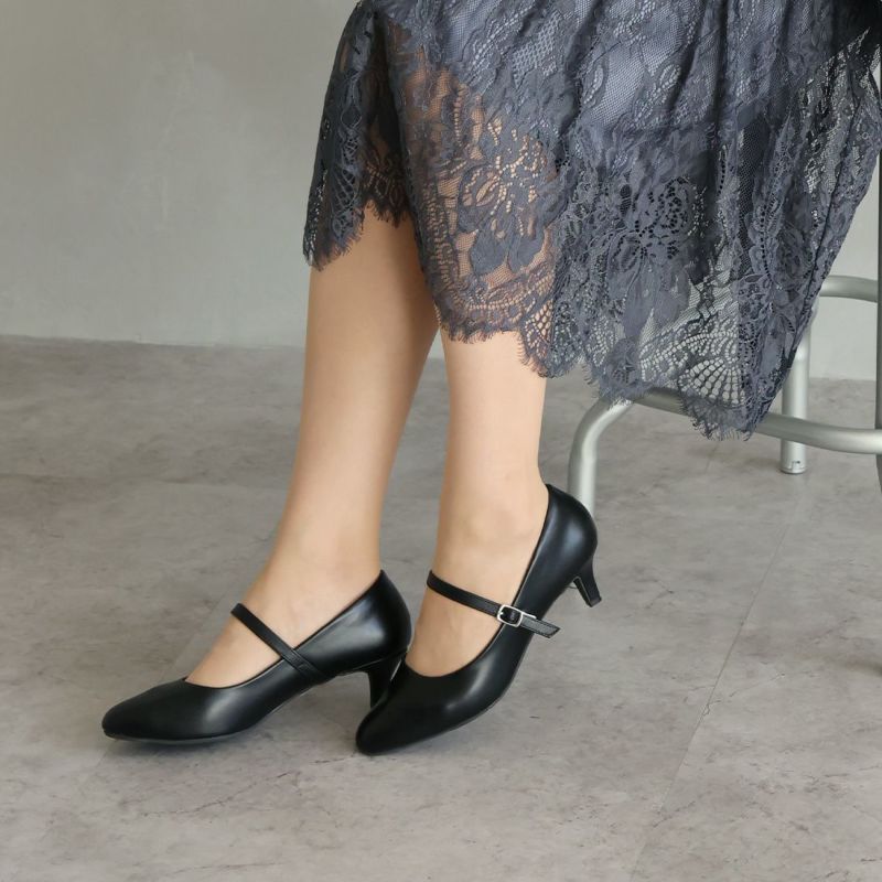・5cmヒール×アーモンドトゥで甘くなりすぎない上品フォルム。