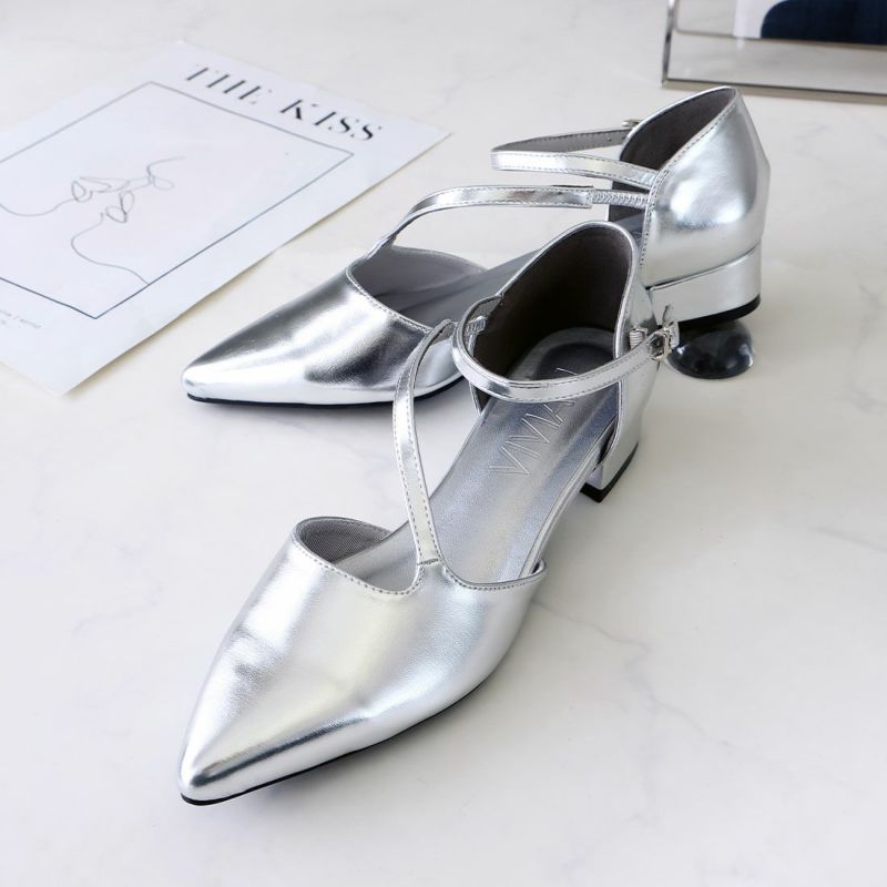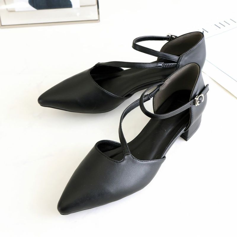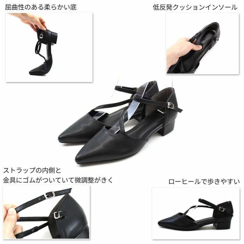 ・斜めストラップとセパレートデザインでレディライクな足元を演出