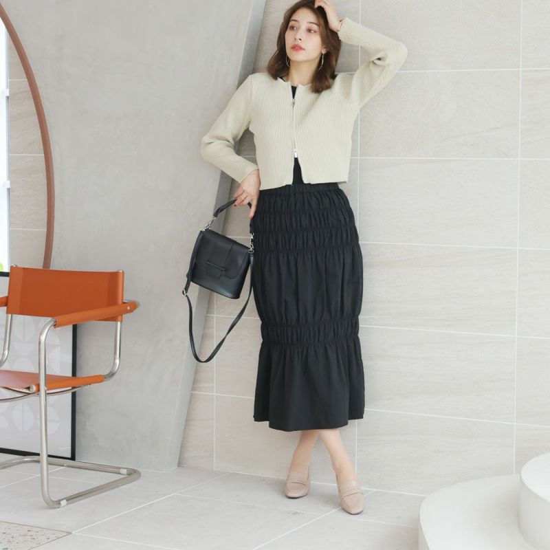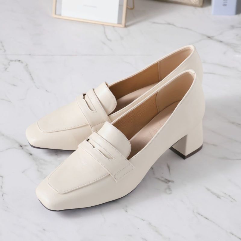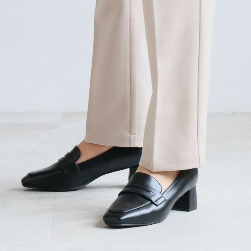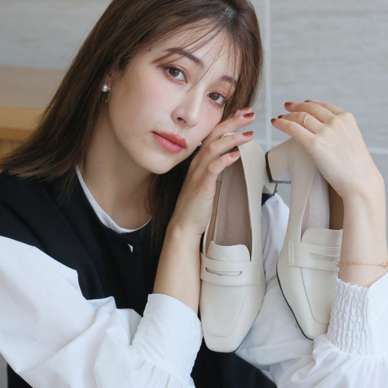 ・スクエアトゥ×ブロックヒールで甘くなりすぎない上品フォルム。