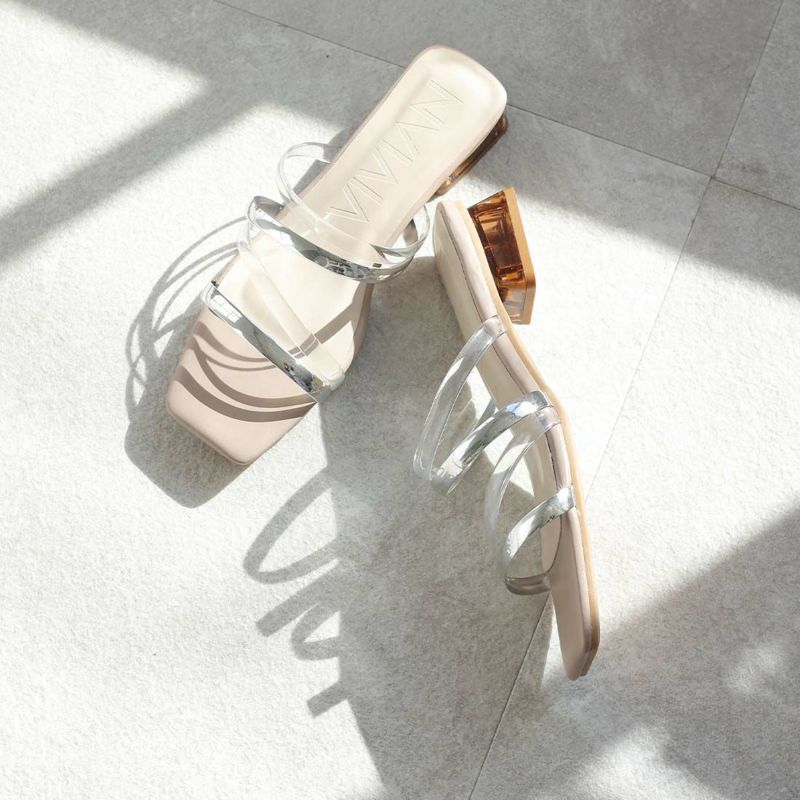 華奢ストラップ×クリアヒールで魅惑のヌーディーサンダル!