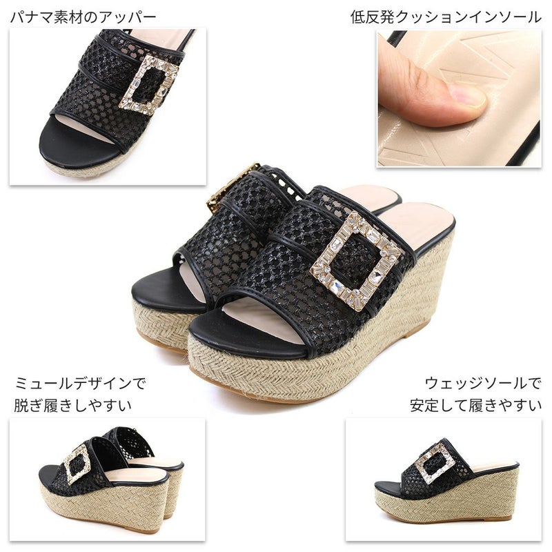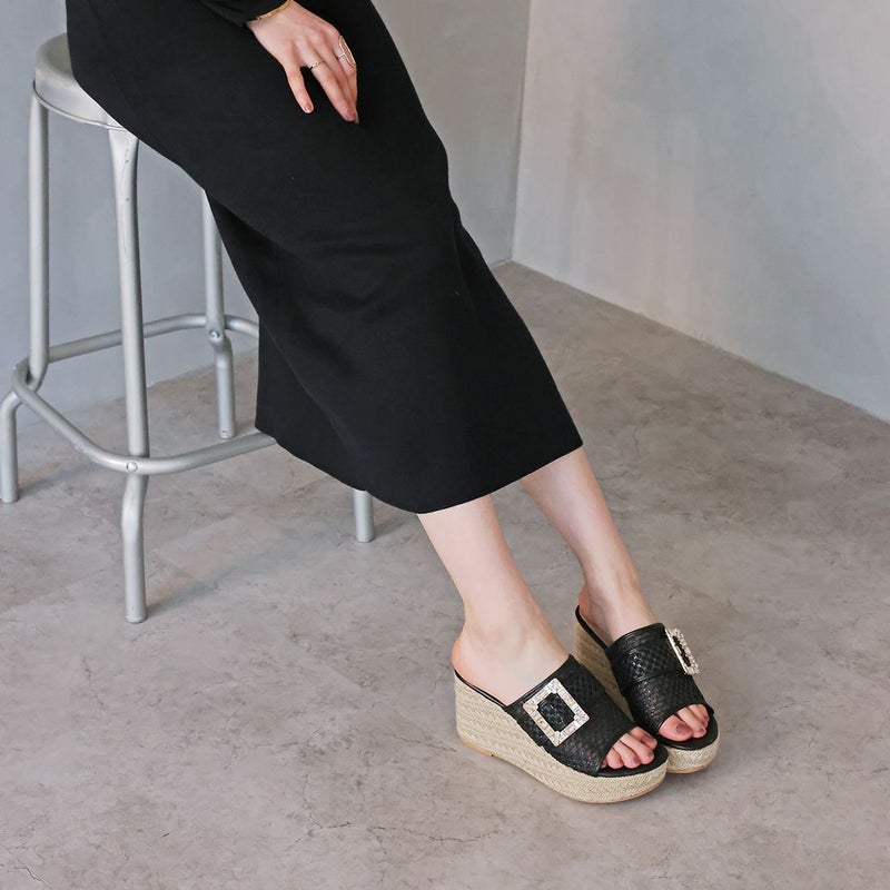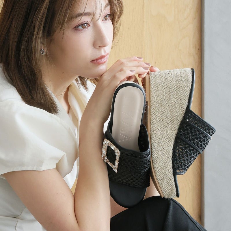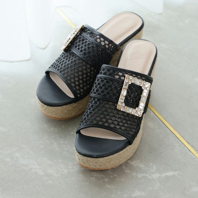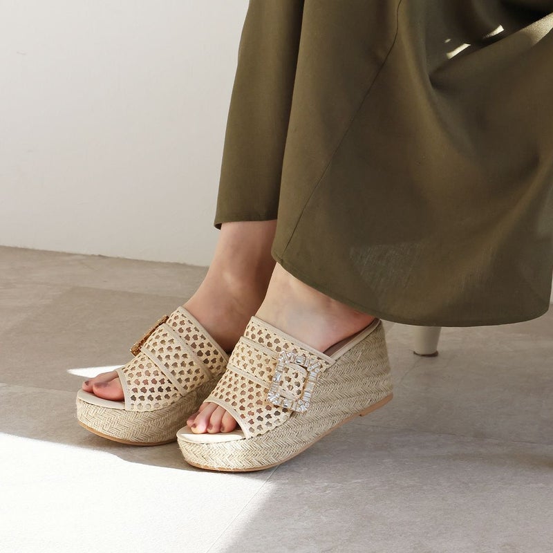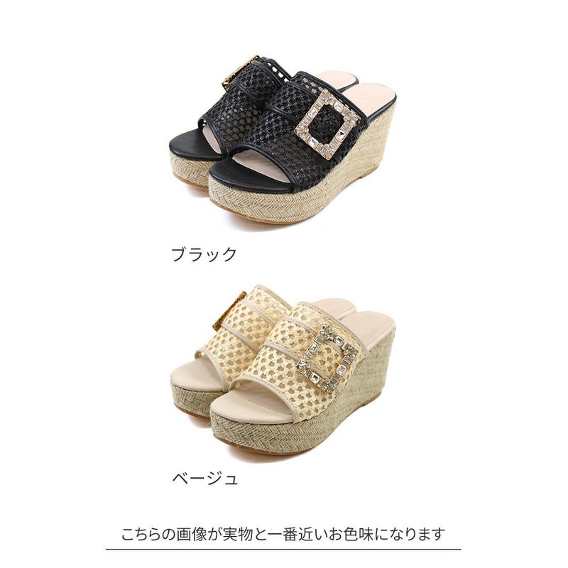 ・キラキラビジューバックルが輝く主役級アイテムのウェッジサンダル!