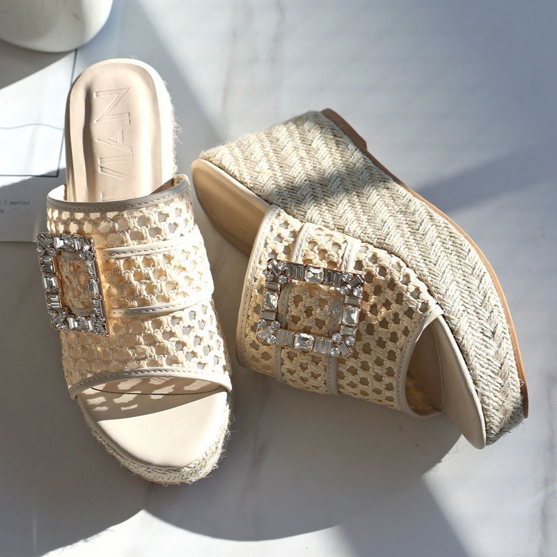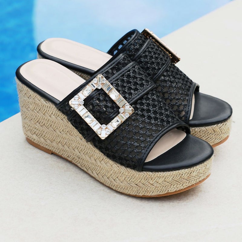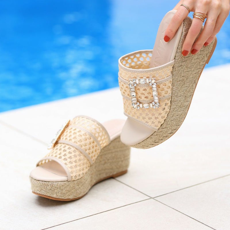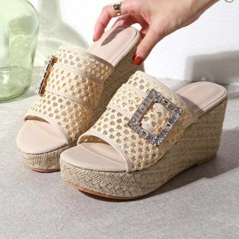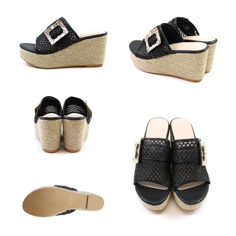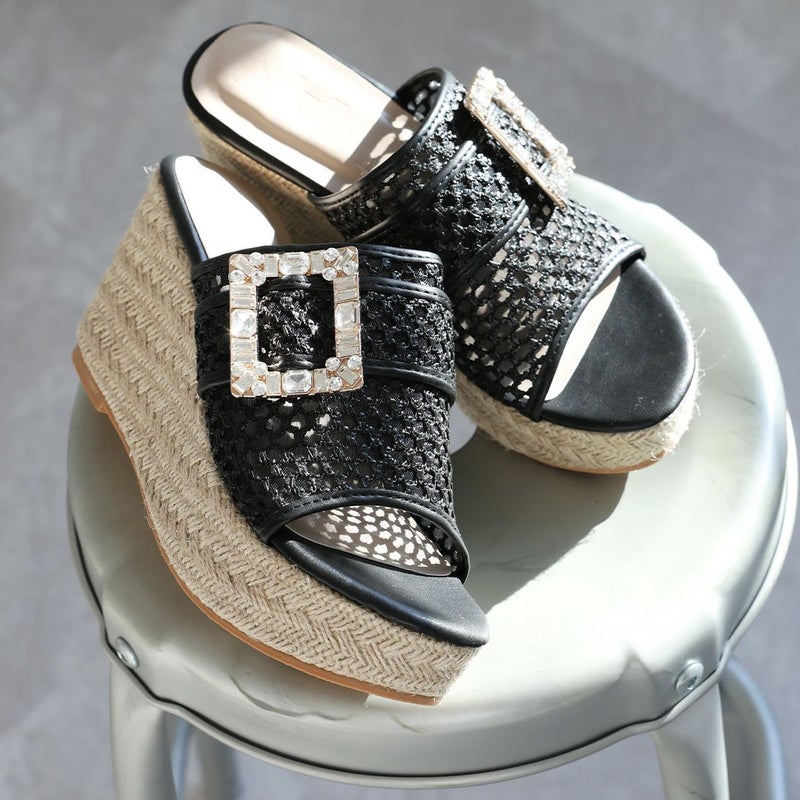・キラキラビジューバックルが輝く主役級アイテムのウェッジサンダル!