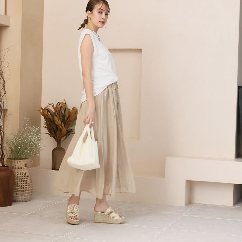 ・透け感のあるパナマ×チュール素材でシアーな足元を演出