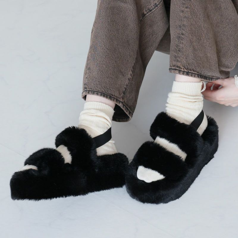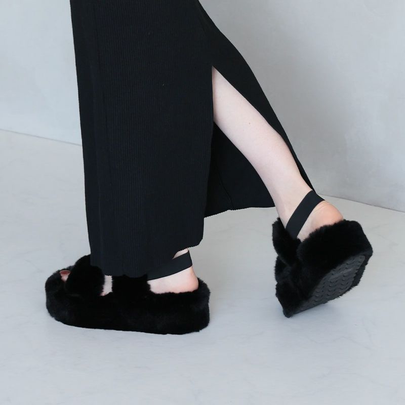 ・たっぷりのファーを贅沢に使用した、ふわもこ感がたまらない一足。