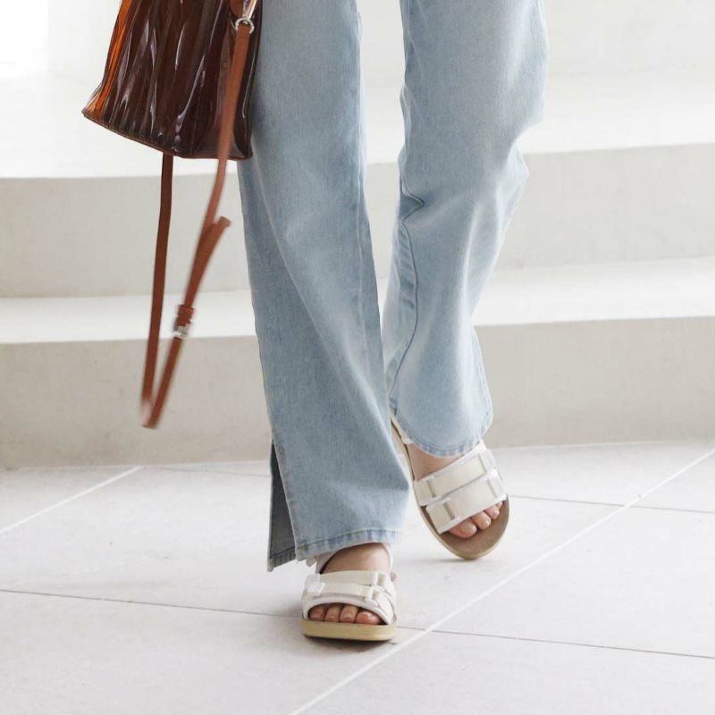 ・軽量の2cm厚底フラットソールは、屈曲性があってよく曲がるので走ったり色んな動きに対応できてアクティブに過ごせます!