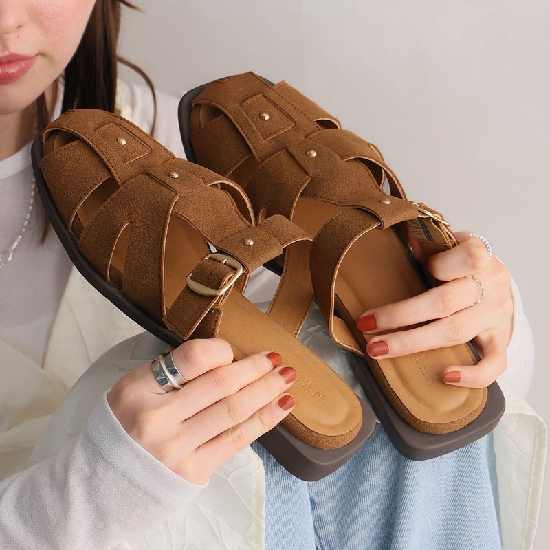 ・足元にこなれ感を演出できる大人クロスデザインサンダル!