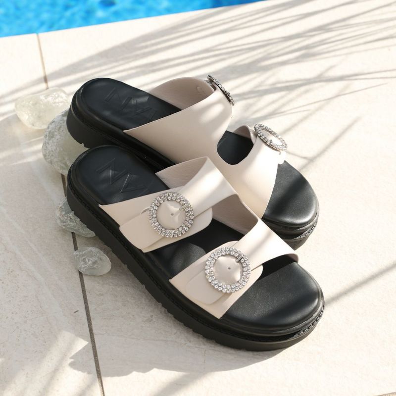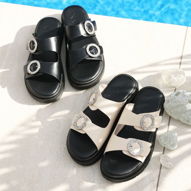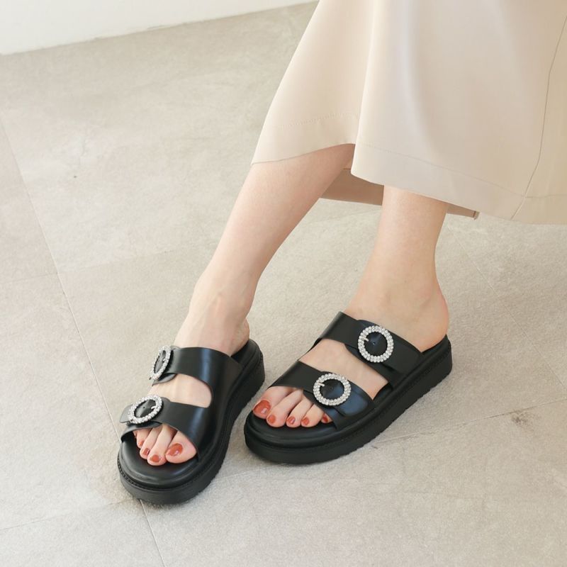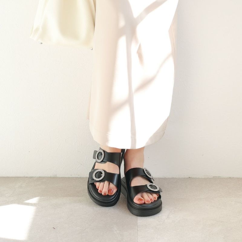 ・2つのキラキラビジューバックルが輝く主役級アイテム!