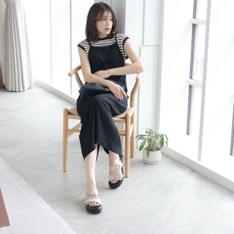 ・高級感のあるビジューバックルは、いつものコーデに合わせるだけでエレガントさをプラス。