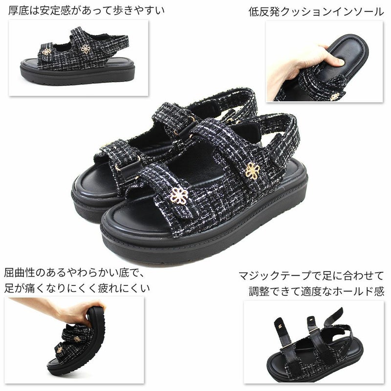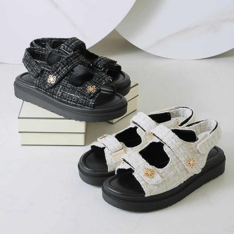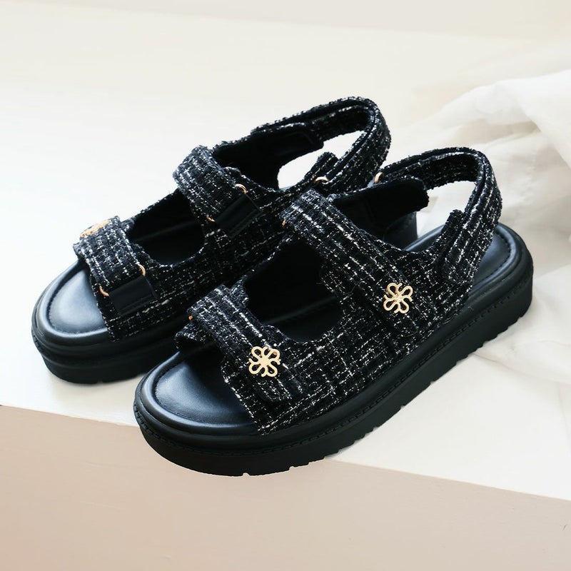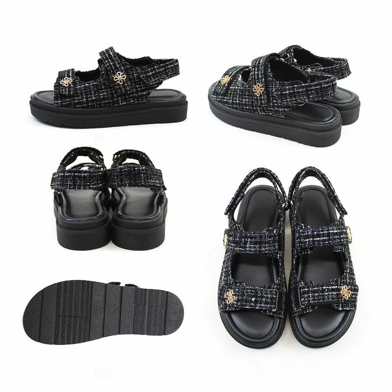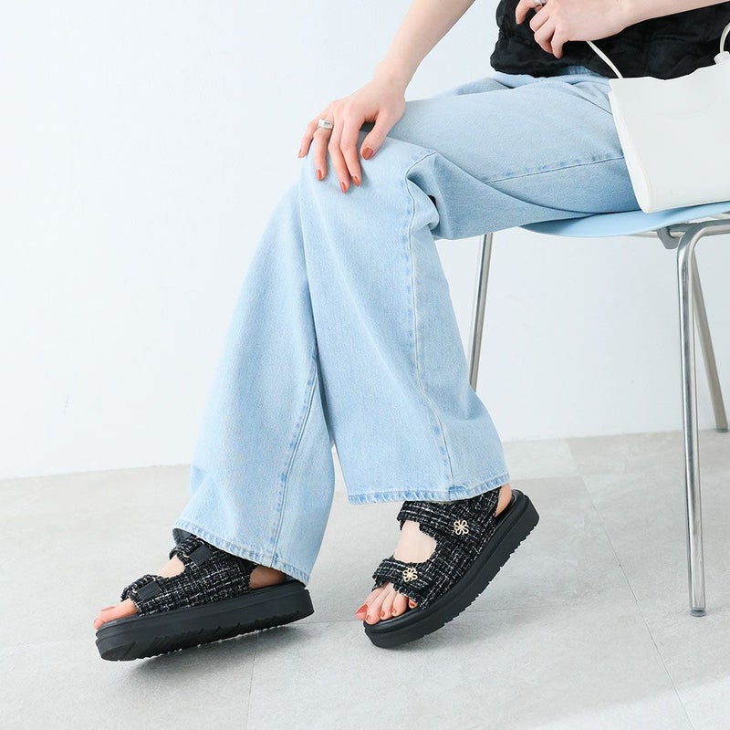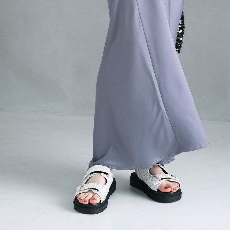 VIVIAN 厚底ゴールドモチーフツイードサンダル