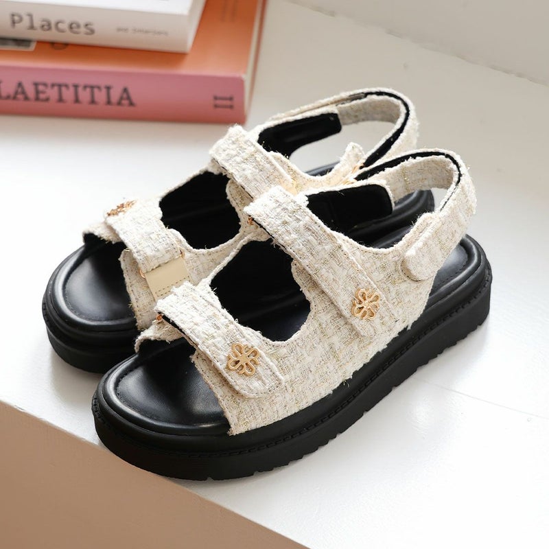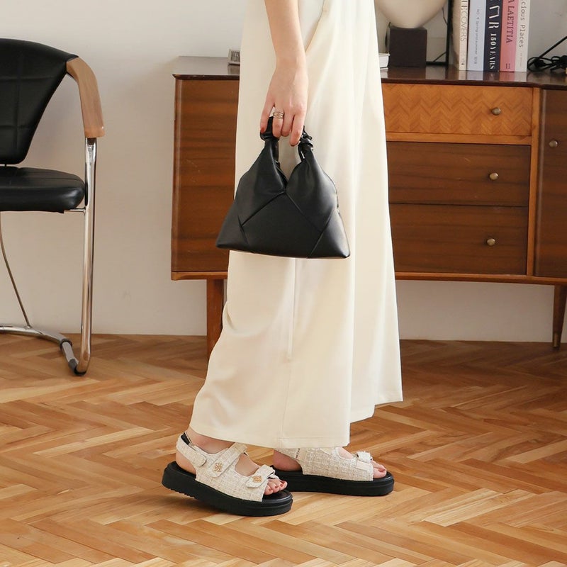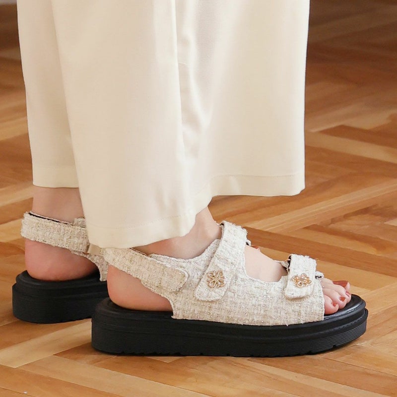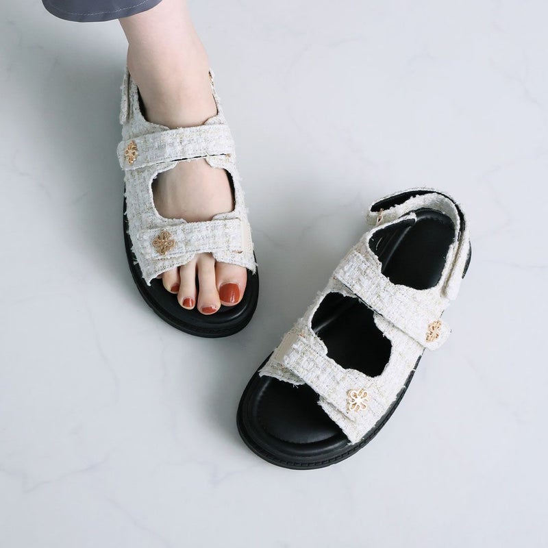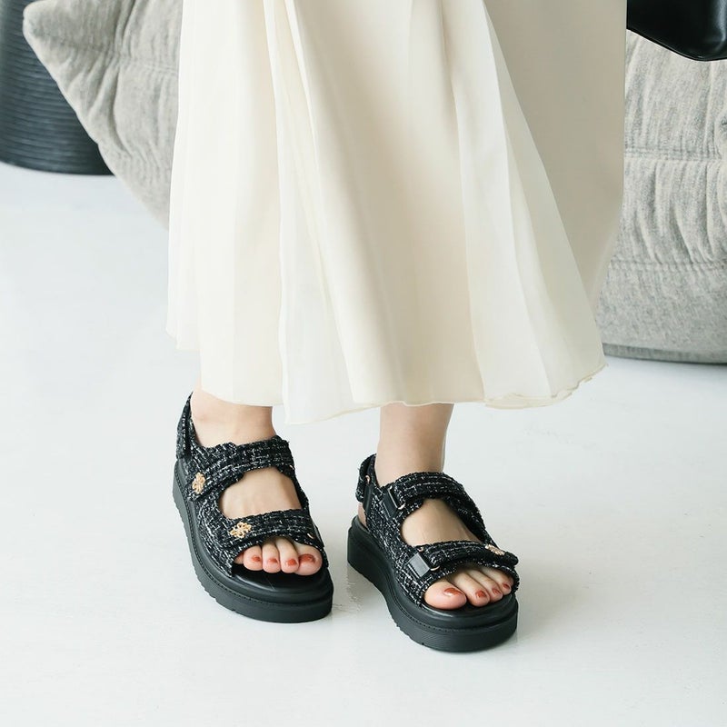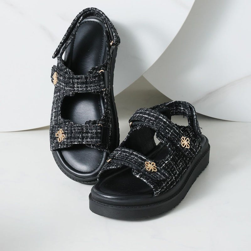VIVIAN 厚底ゴールドモチーフツイードサンダル