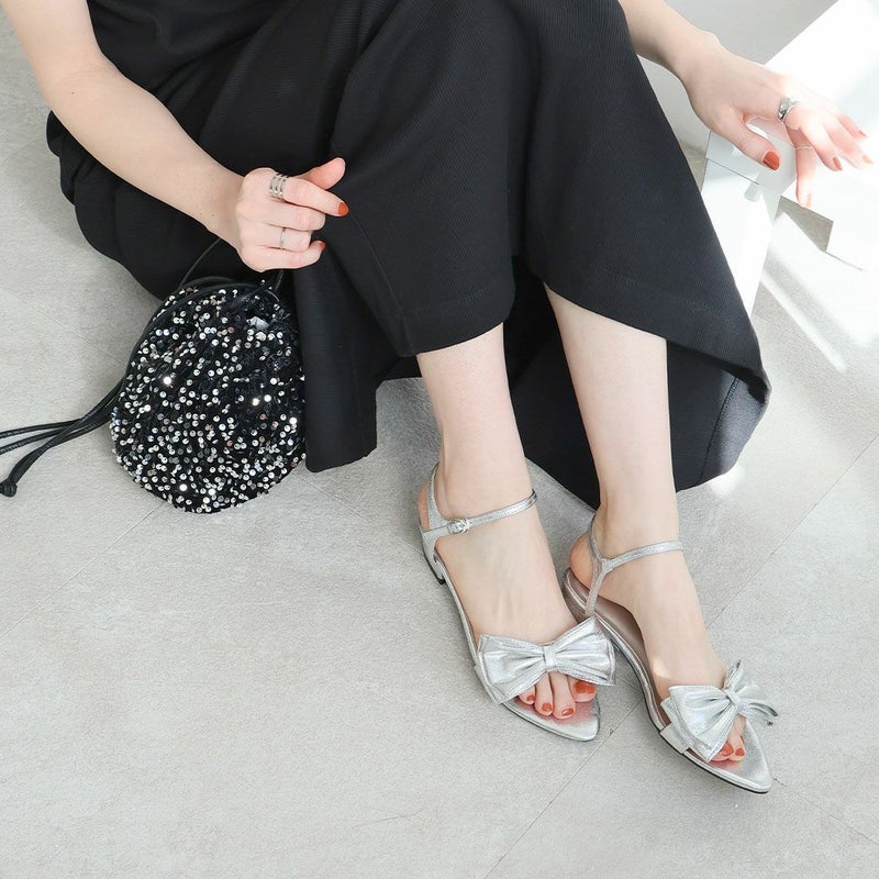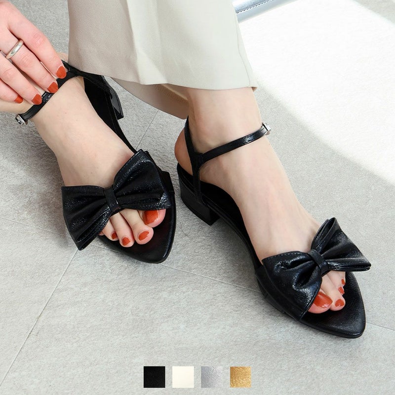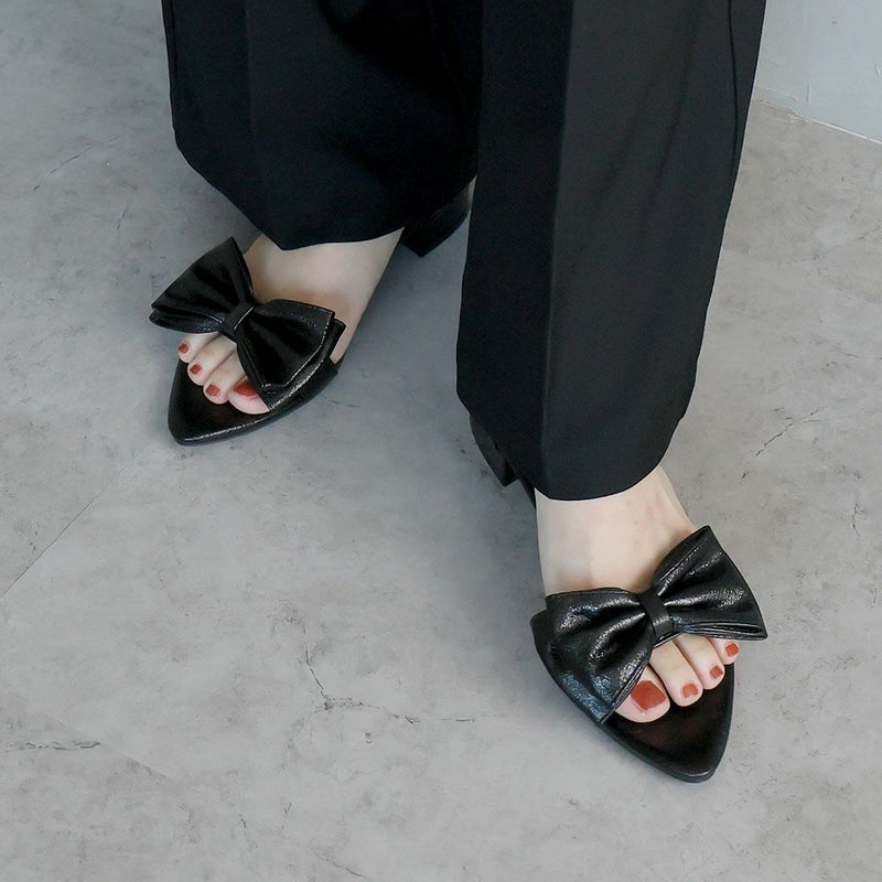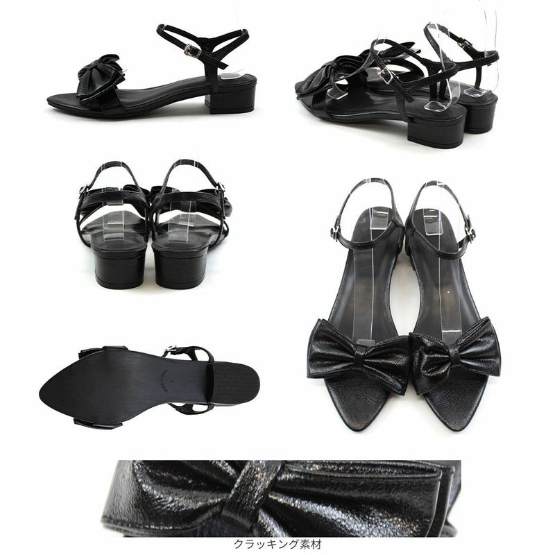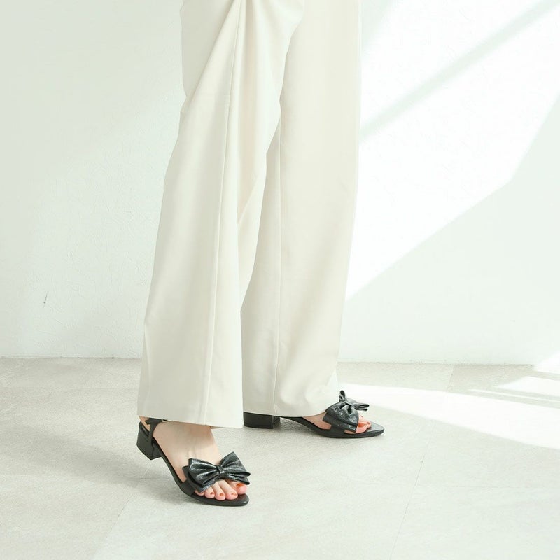 ・シワ加工素材のリボンが主役のストラップサンダル!