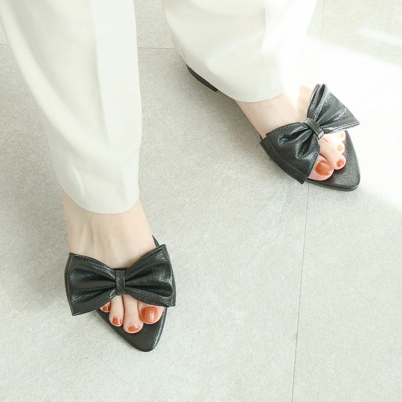 ・ポインテッドトゥ×Vカットで甘くなりすぎない上品フォルム。
