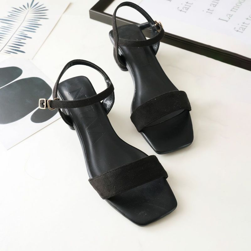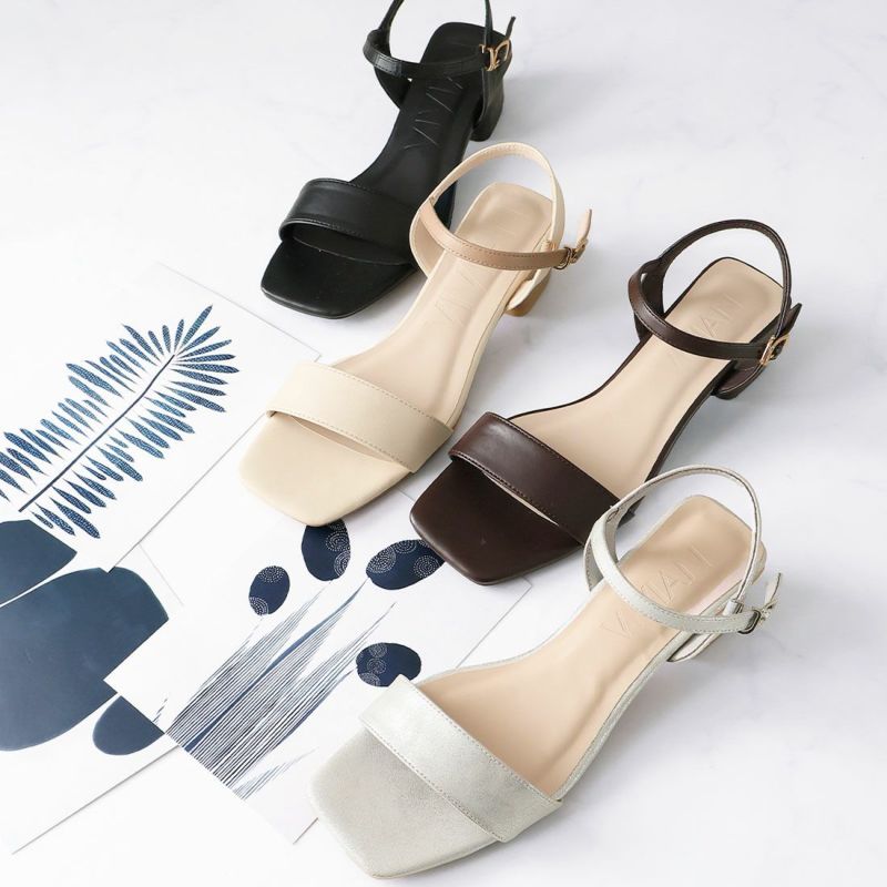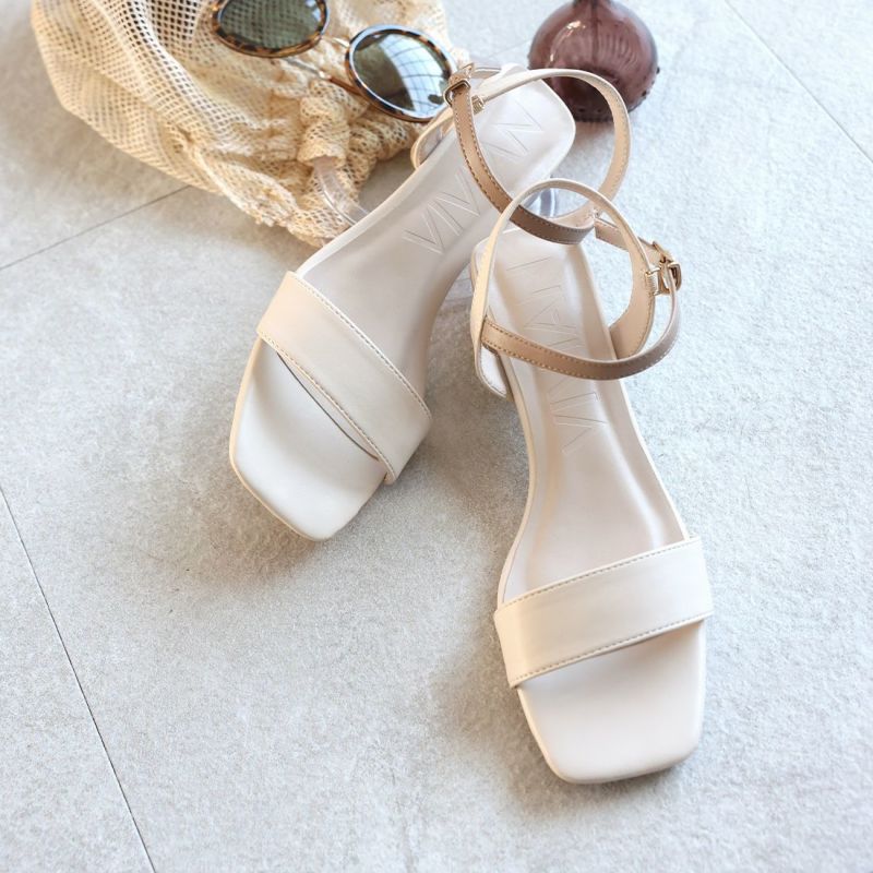 VIVIAN スクエアトゥ4cmヒールアンクルストラップサンダル