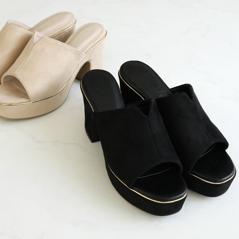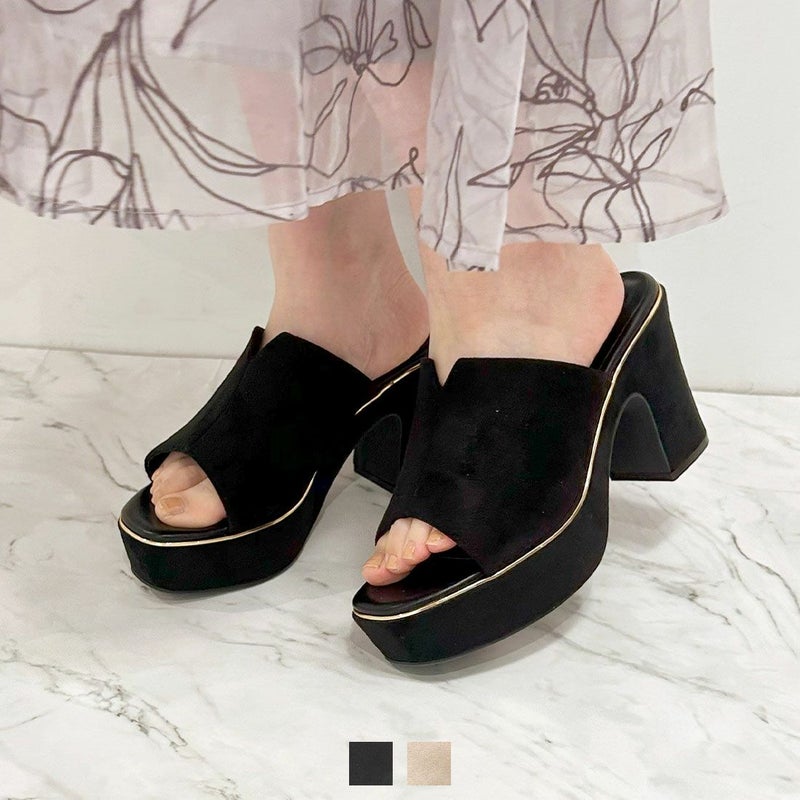 ・スリットデザインがアクセントの厚底ミュールサンダル!