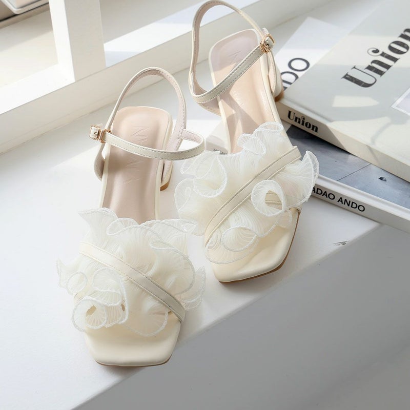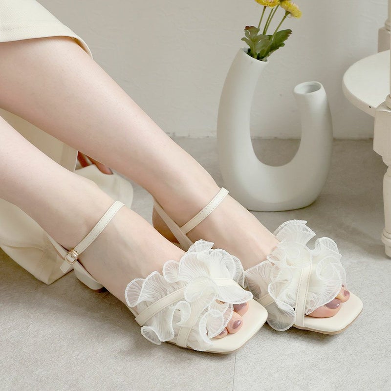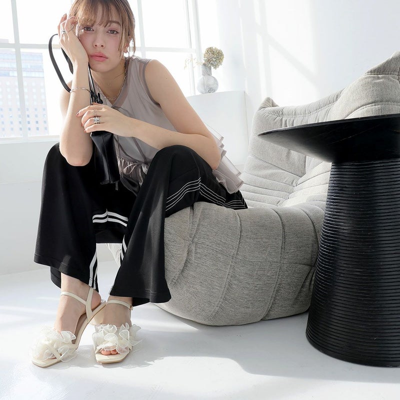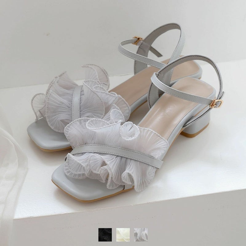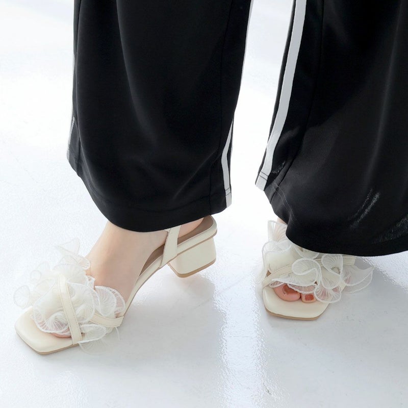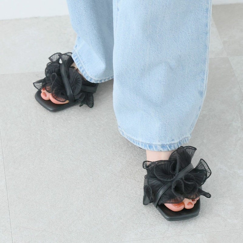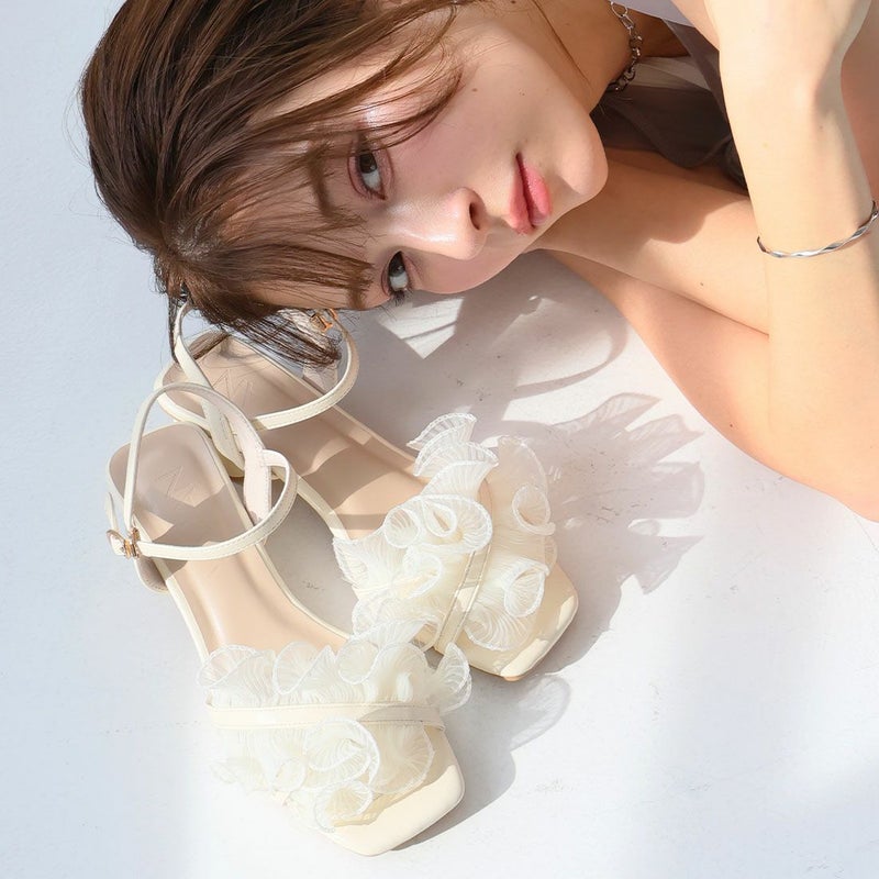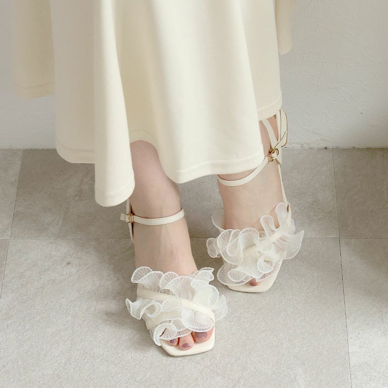 ・ボリュームのシアーフリルが華やかなストラップサンダル!