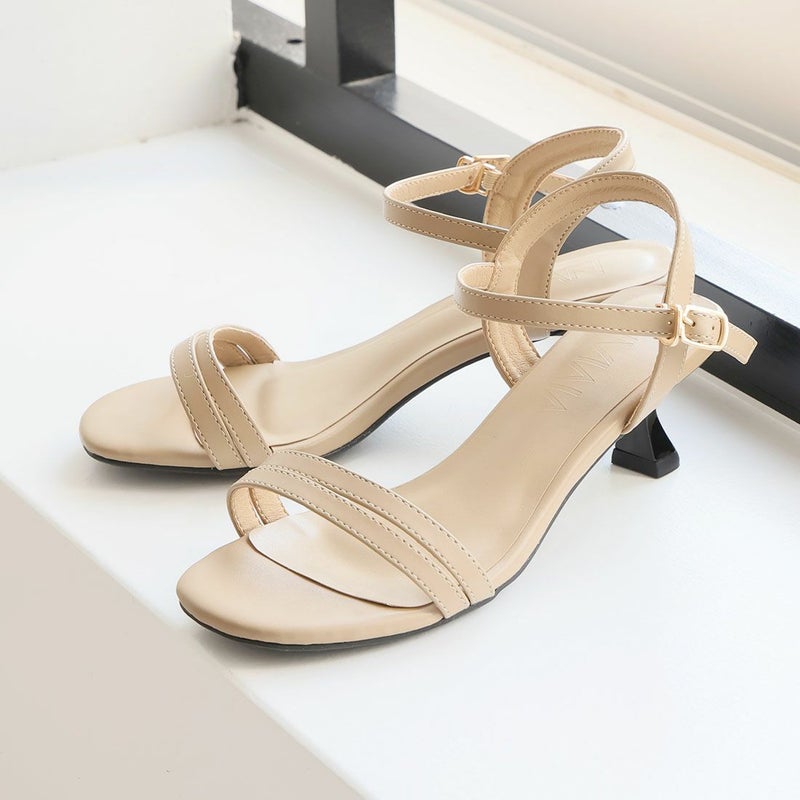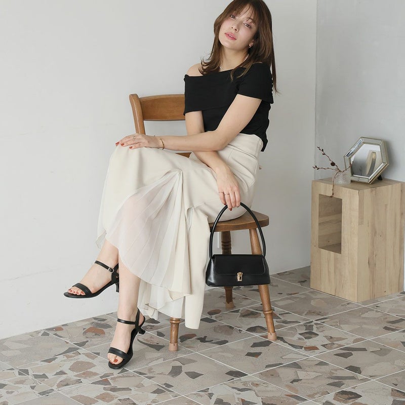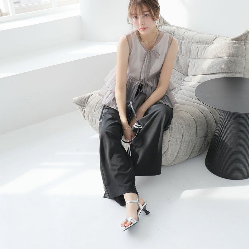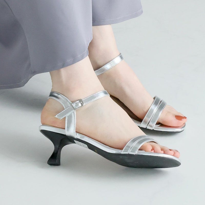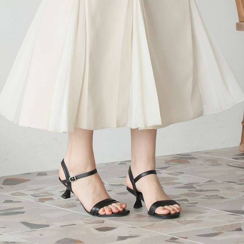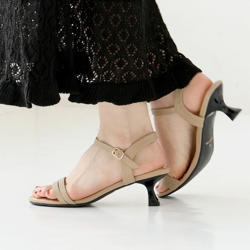 ・ストラップ×変形くびれヒールでトレンドライクなシルエット!
