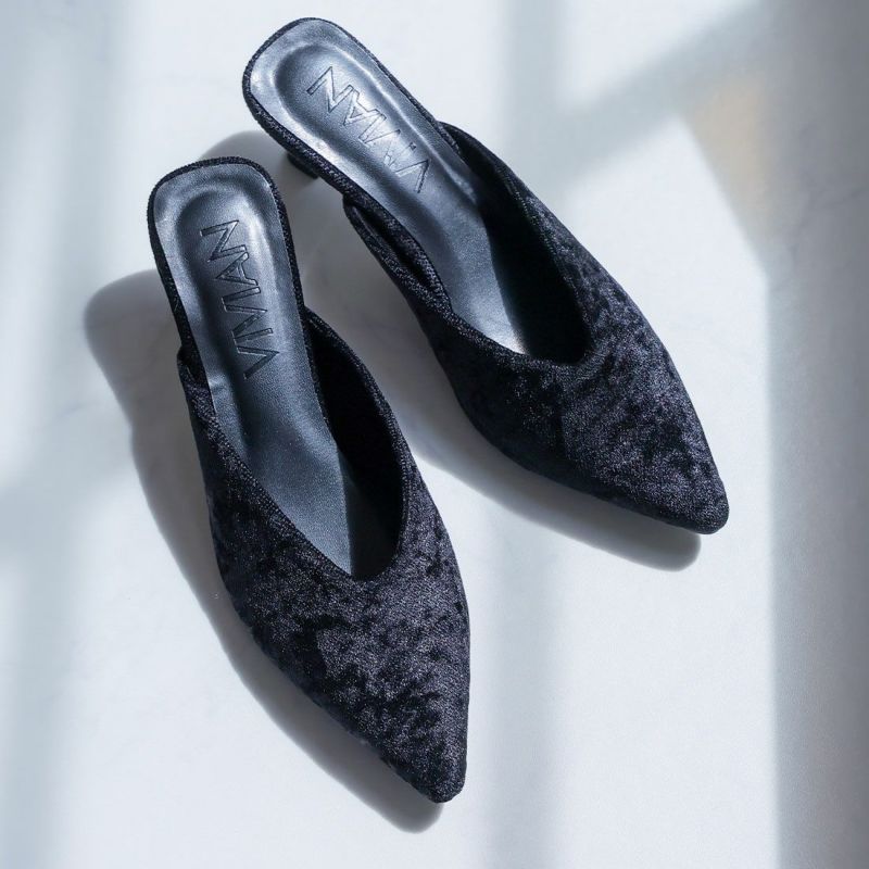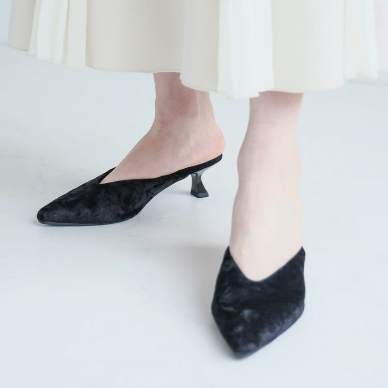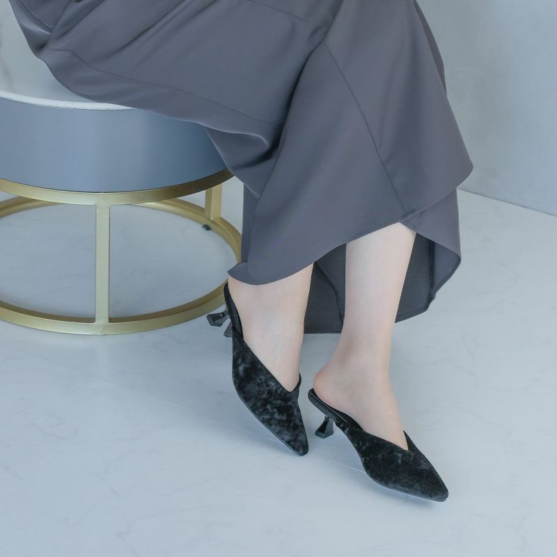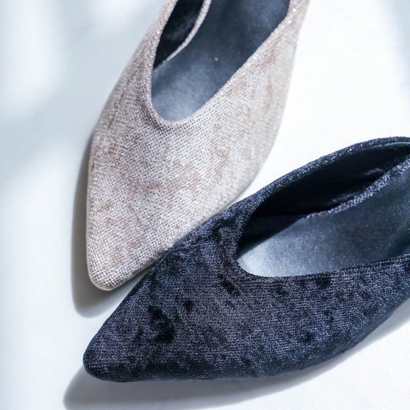 ・キラキラのラメ入りベロア素材が目を引く主役級ミュール!
