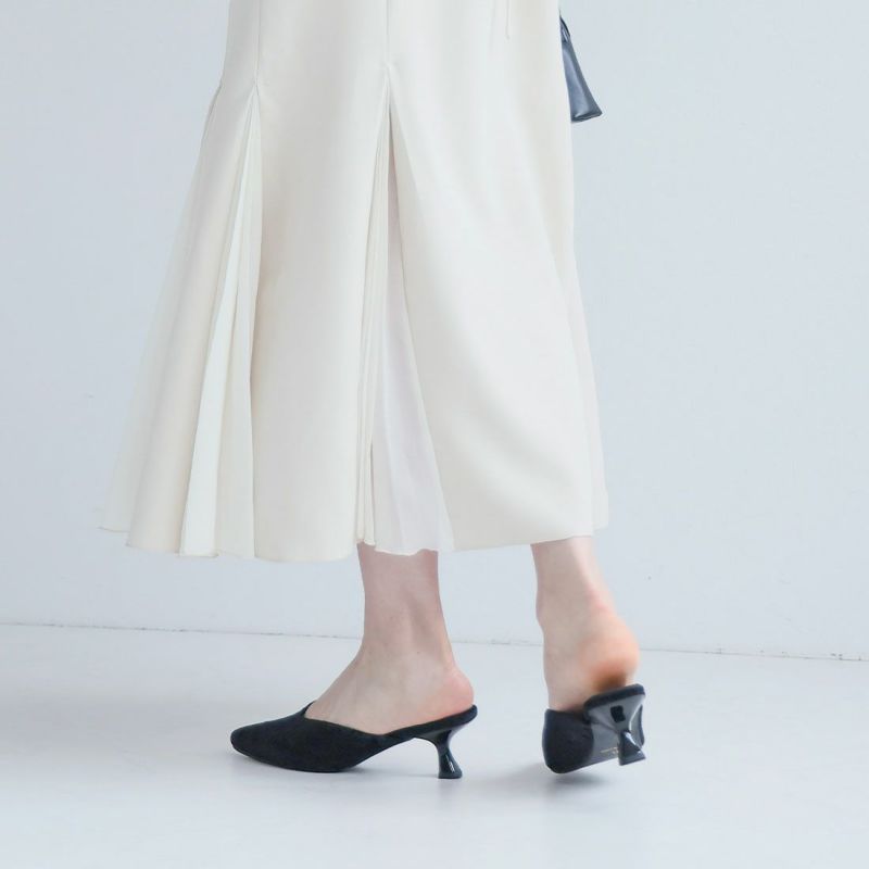 ・Vカットの履き口とすっきりとしたシルエットで足元をエレガントに演出。