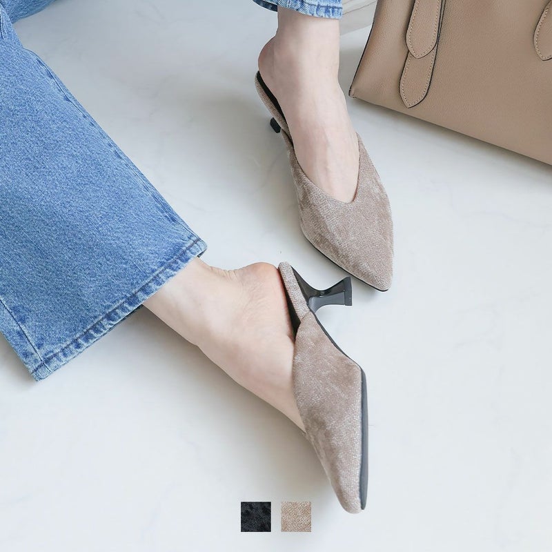 ・キラキラのラメ入りベロア素材が目を引く主役級ミュール!