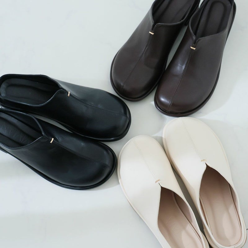 ・特徴的なスリットカットとゴールドの金具がアクセントのトレンドライクなサボサンダル!