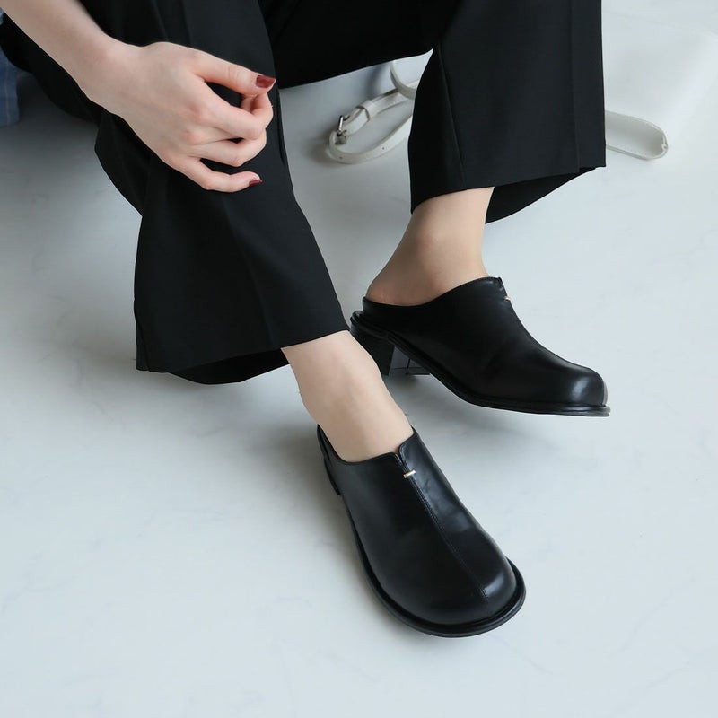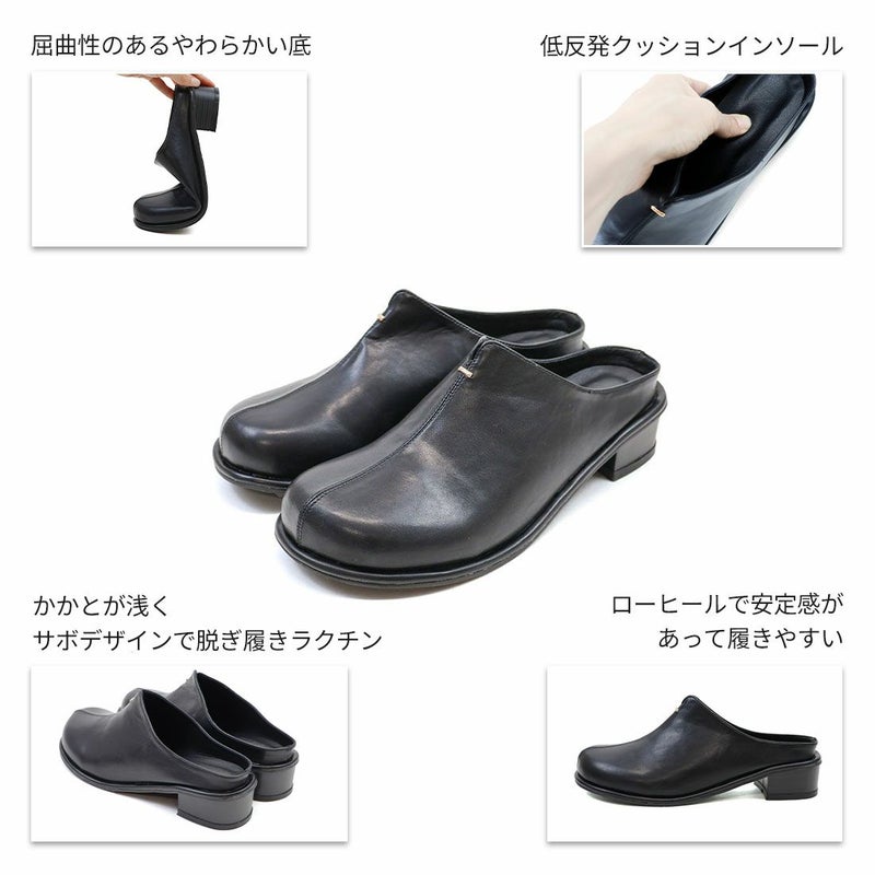 ・かかとが浅くサボデザインで脱ぎ履きラクチン