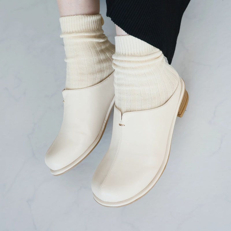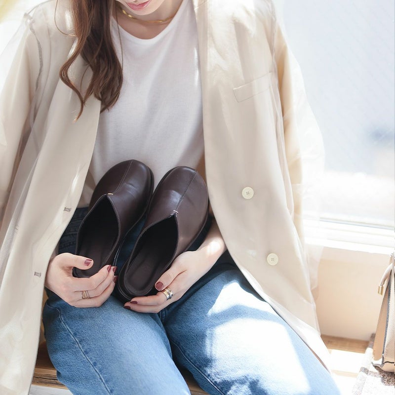 ・深めの履き口で脱げにくく、丈の長いボトムやワンピースとの相性も◎
