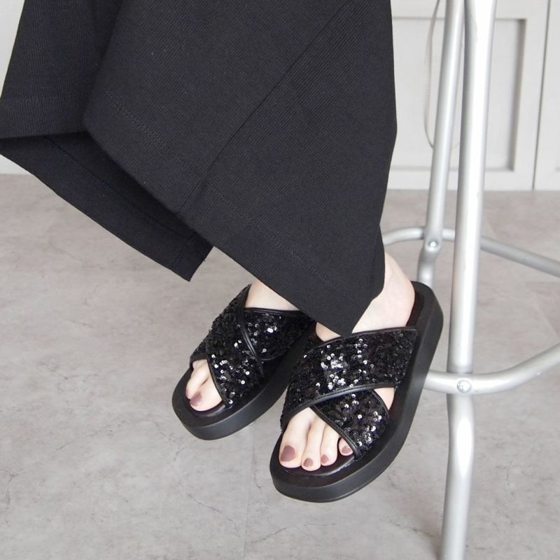 ・スパンコールの輝きをプラスした主役級キラキラクロスバンドサンダル