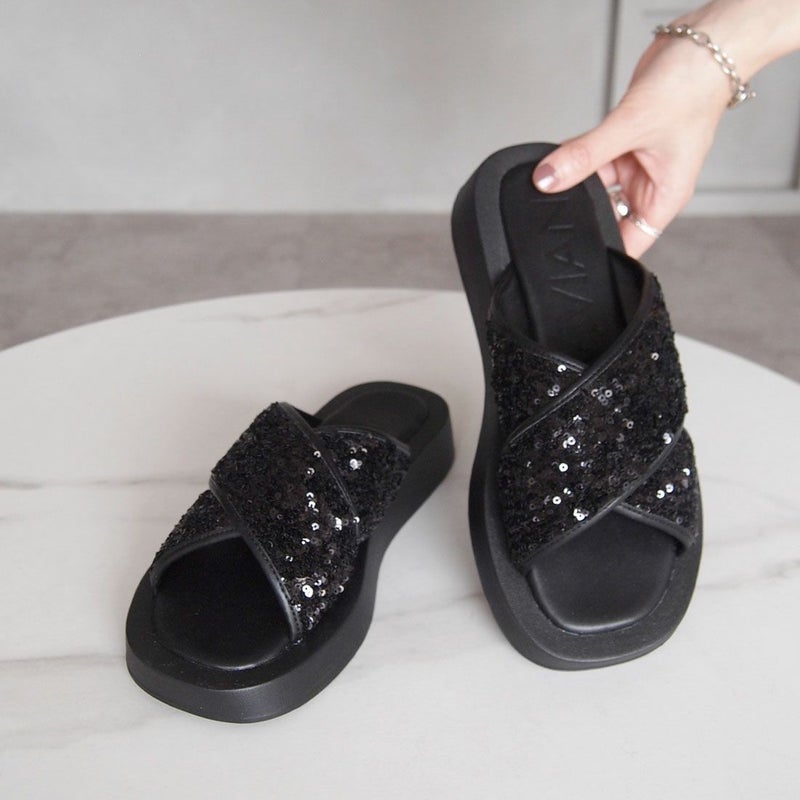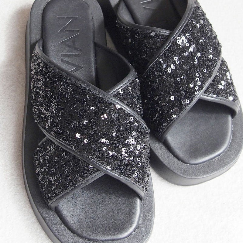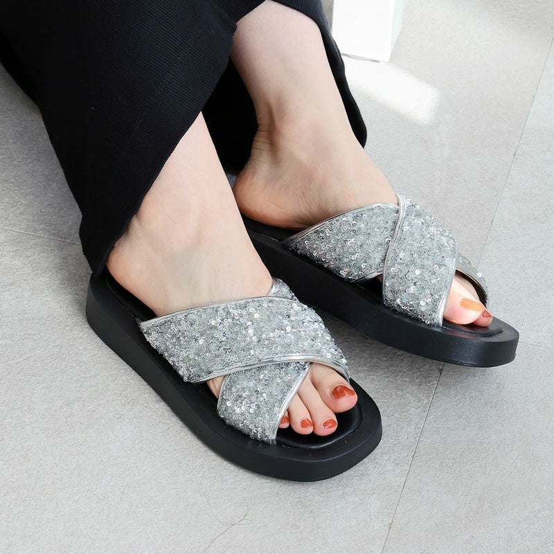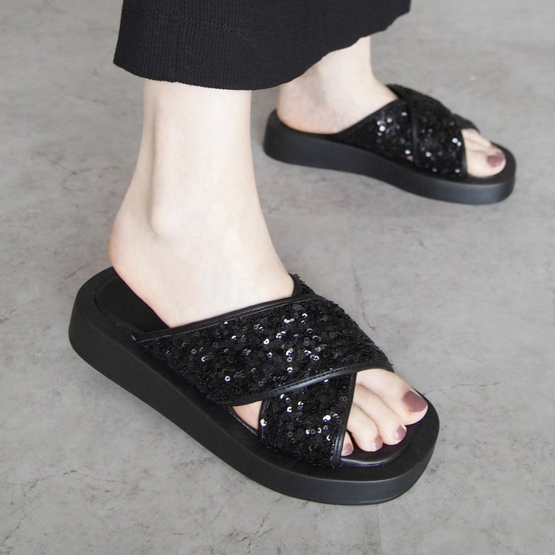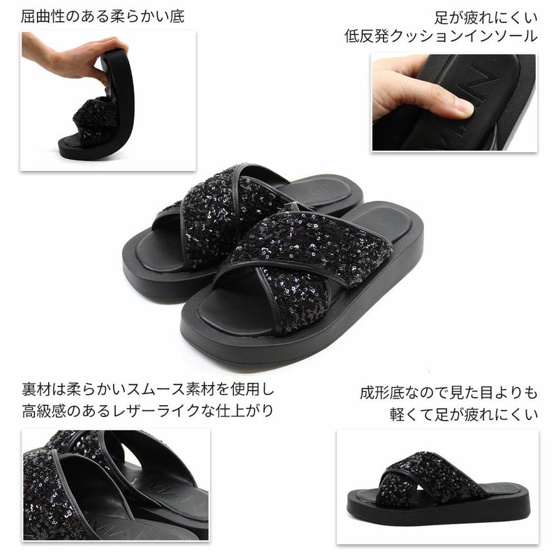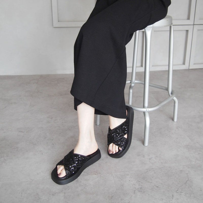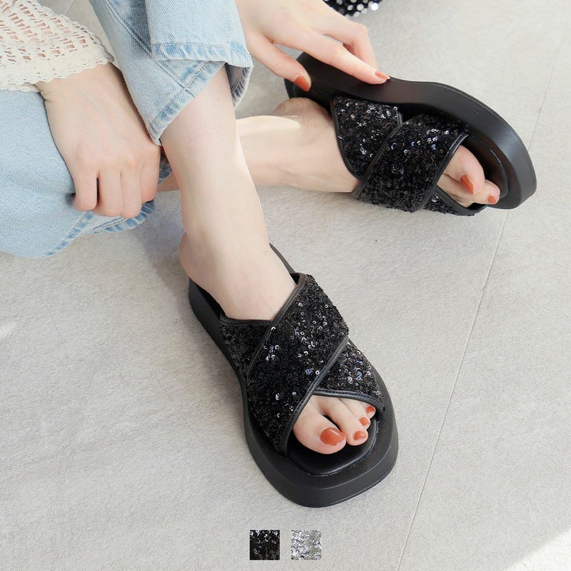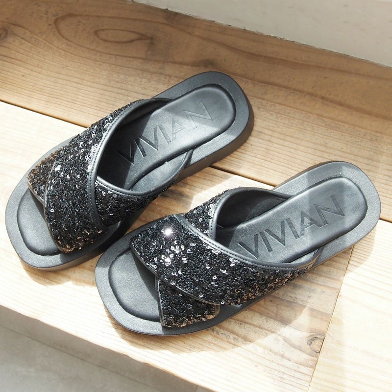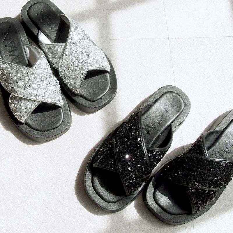 ・スパンコールの輝きをプラスした主役級キラキラクロスバンドサンダル