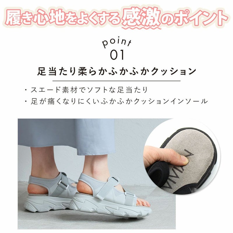 ・足当たりの良いスエード素材で足が痛くなりにくく疲れにくいふかふかクッションインソール。足の形に合わせたアーチクッションで履き心地アップ