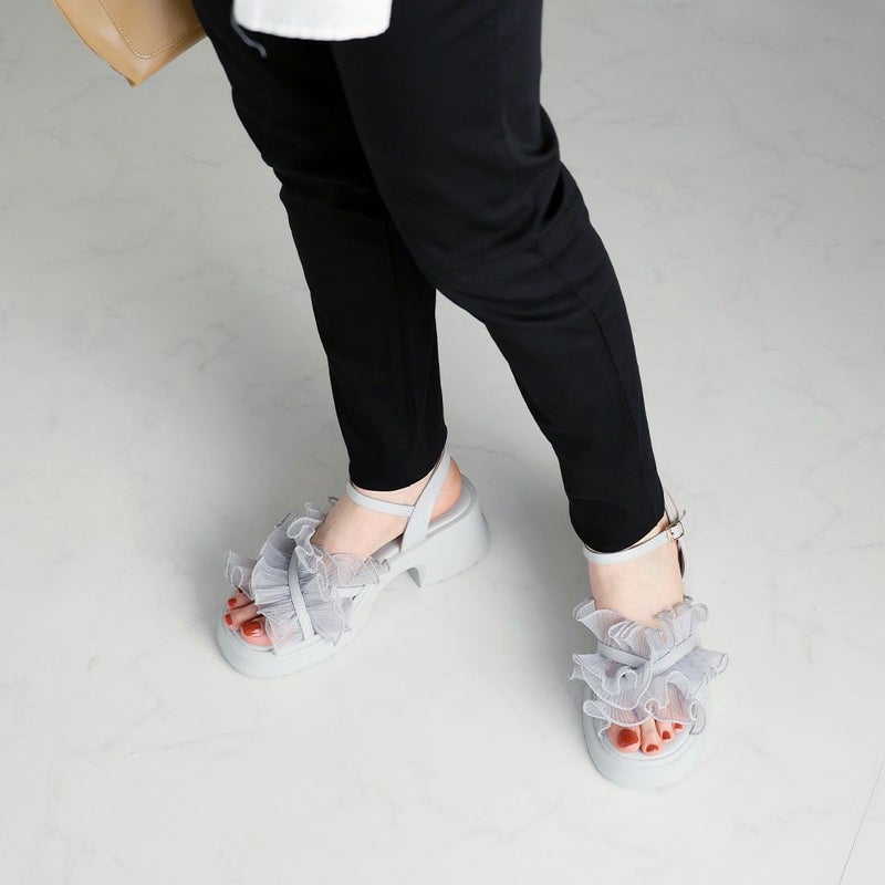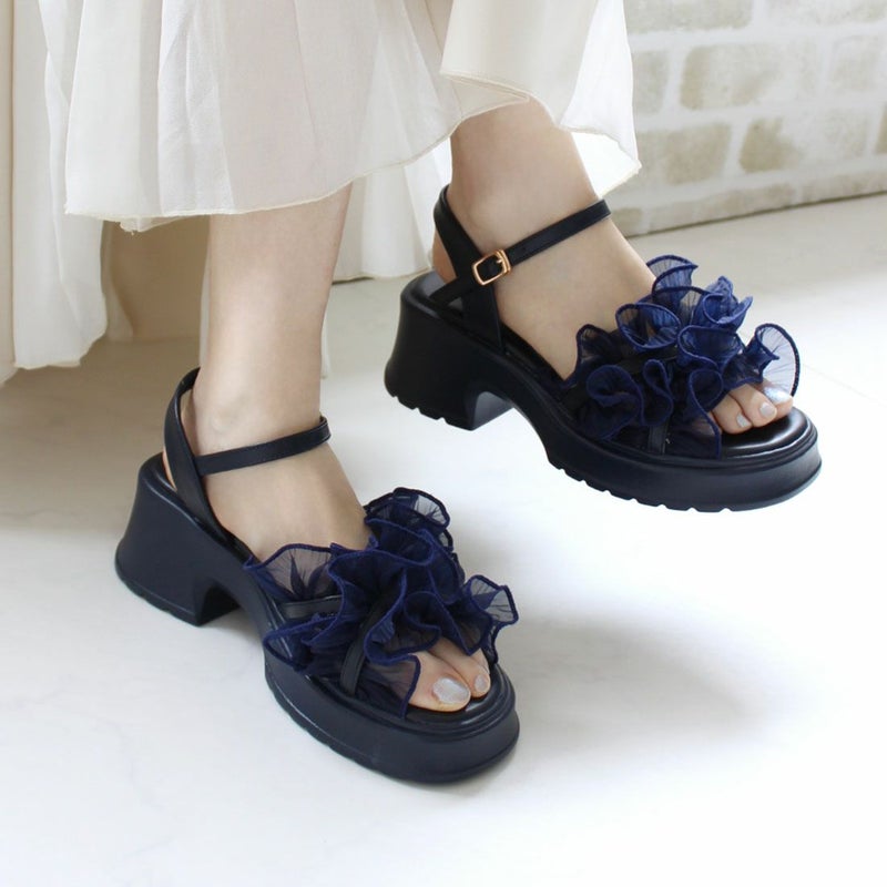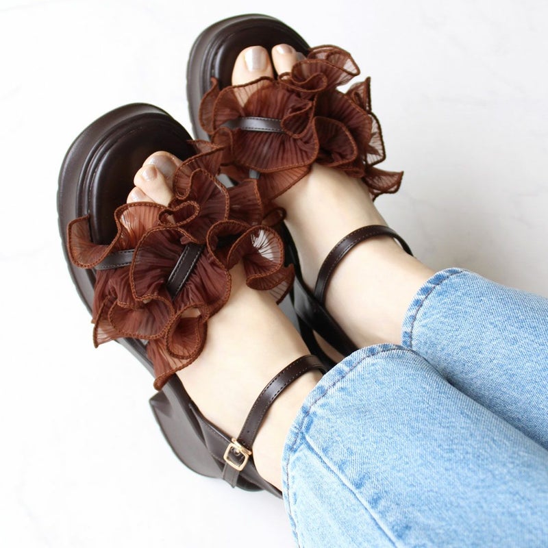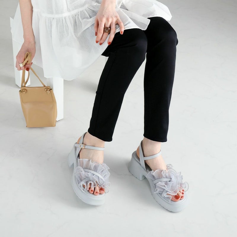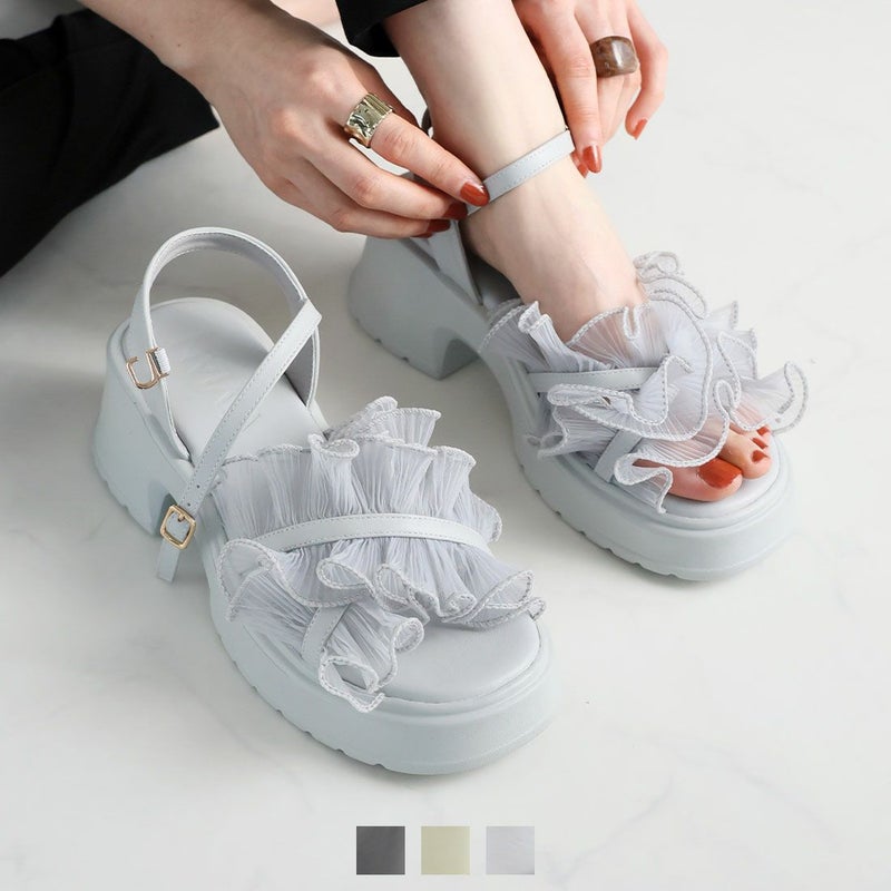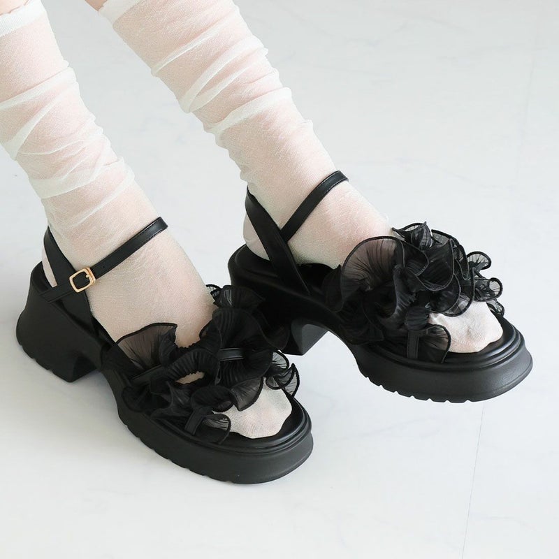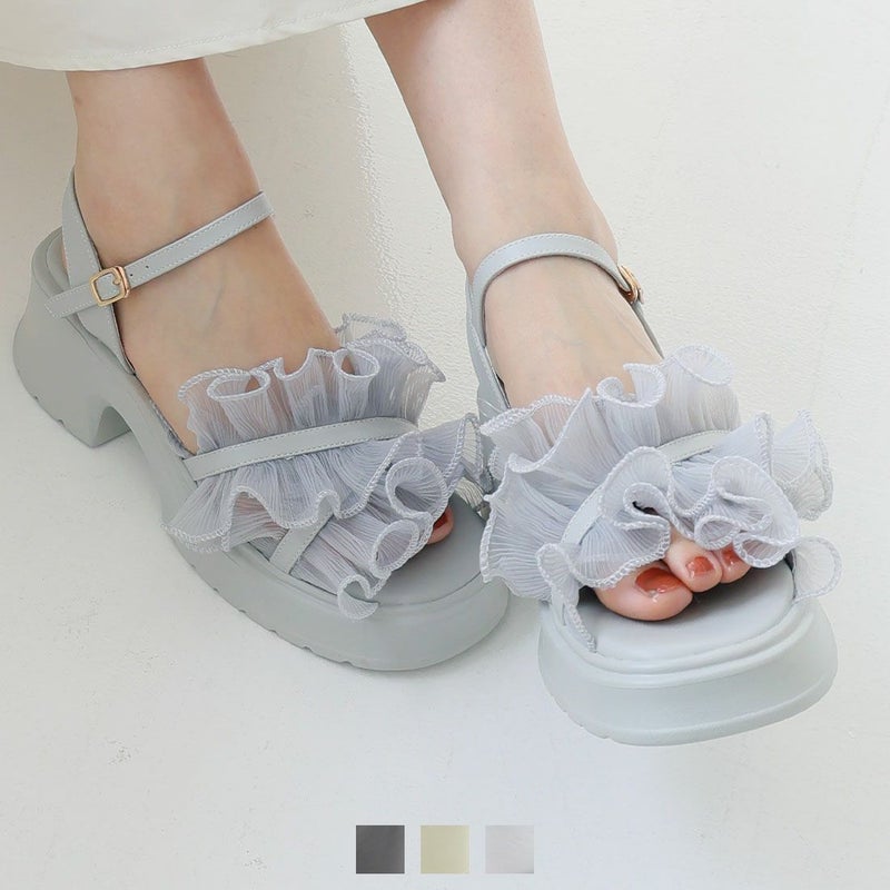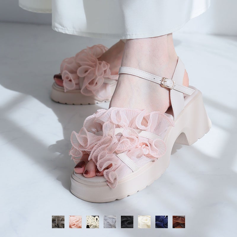 ・ボリュームのシアーフリルが華やかなストラップサンダル!