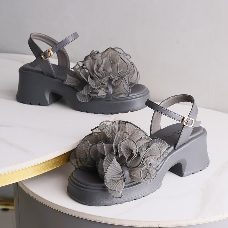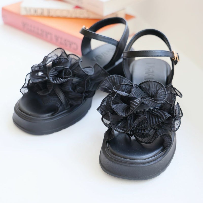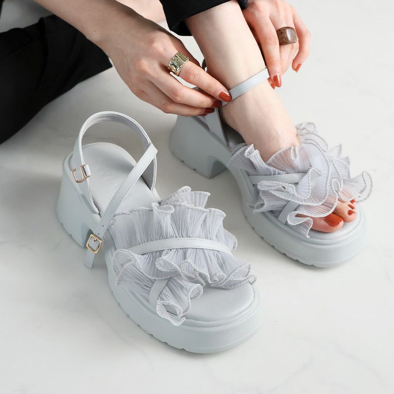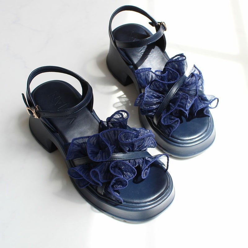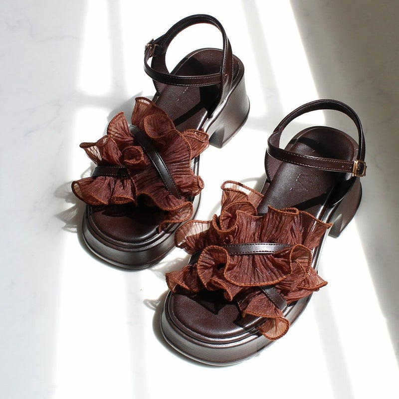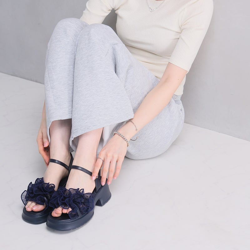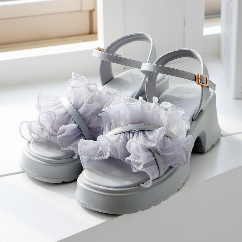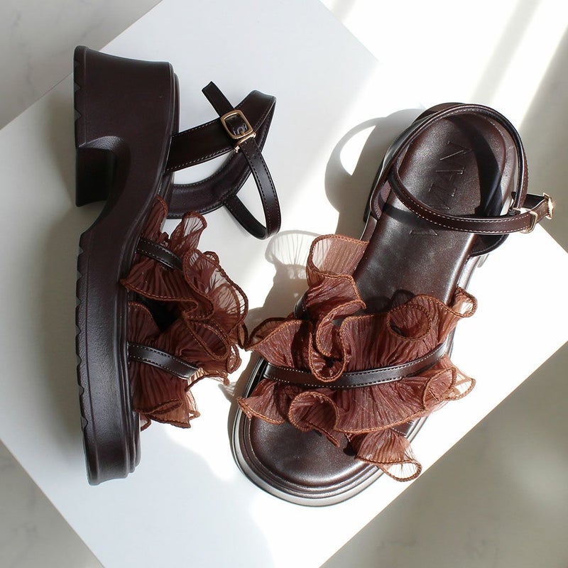 ・ボリュームのシアーフリルが華やかなストラップサンダル!
