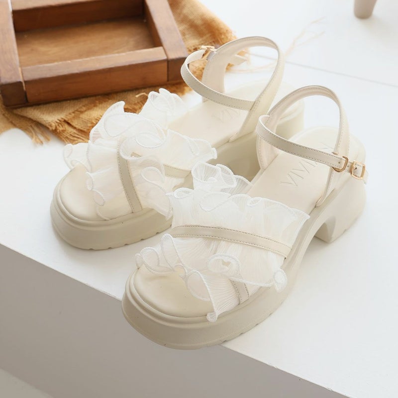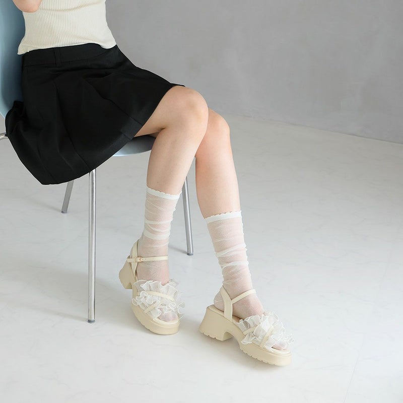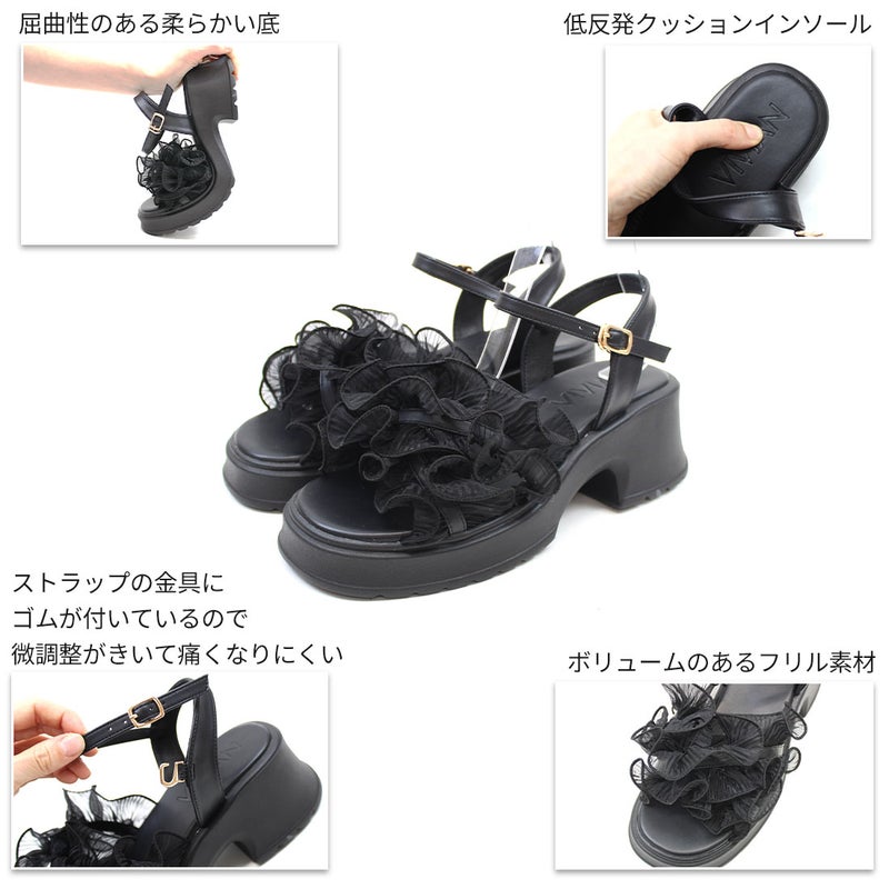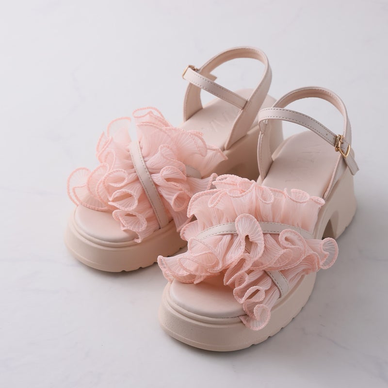 VIVIAN 【2026年夏新色追加】シアークロスフリル厚底ストラップサンダル