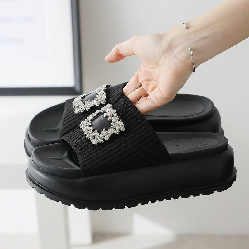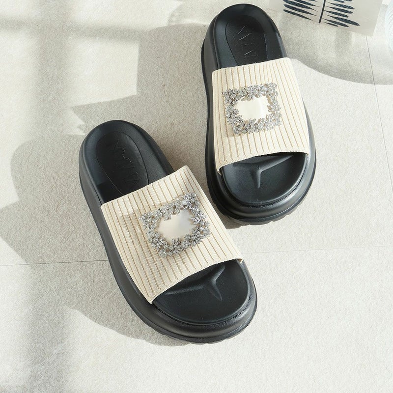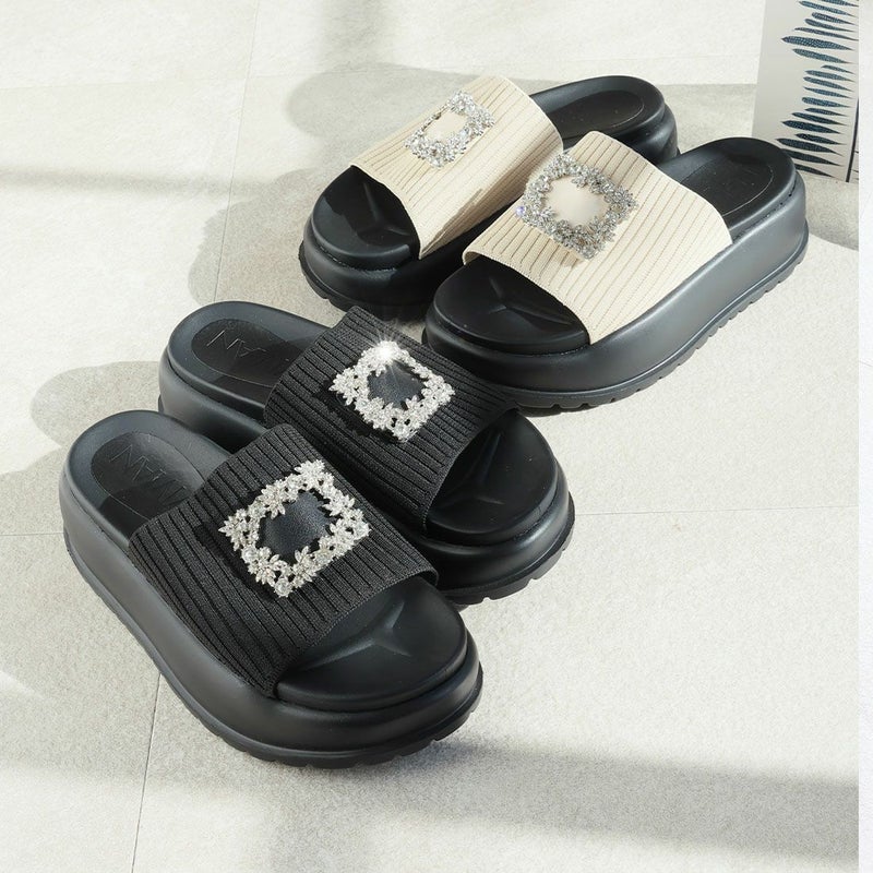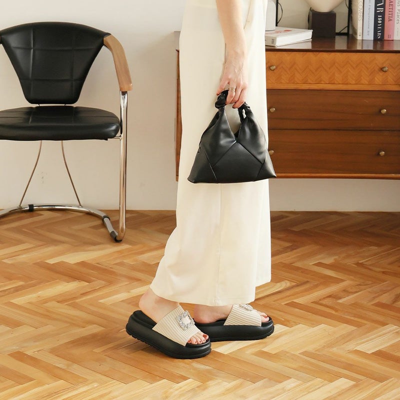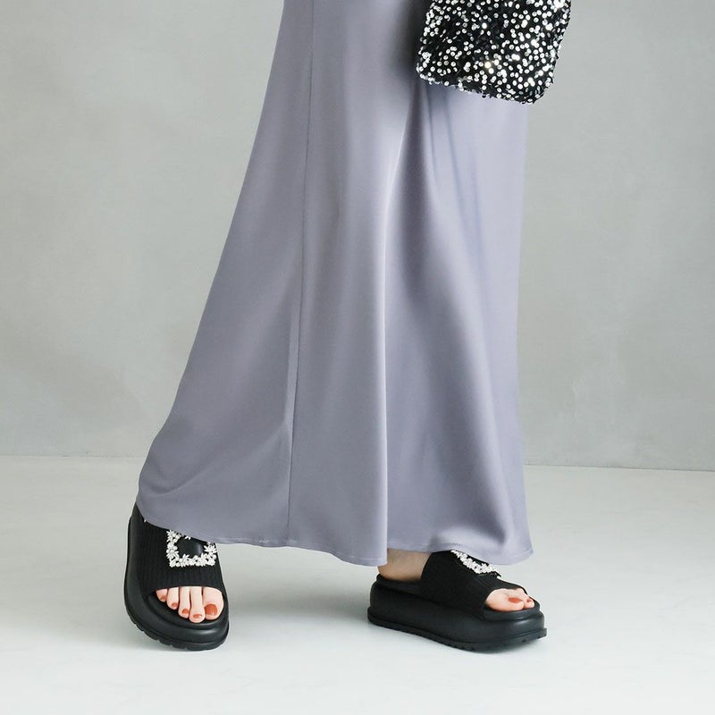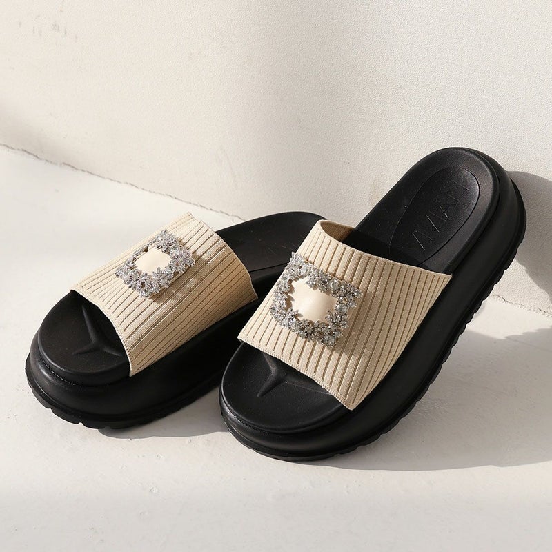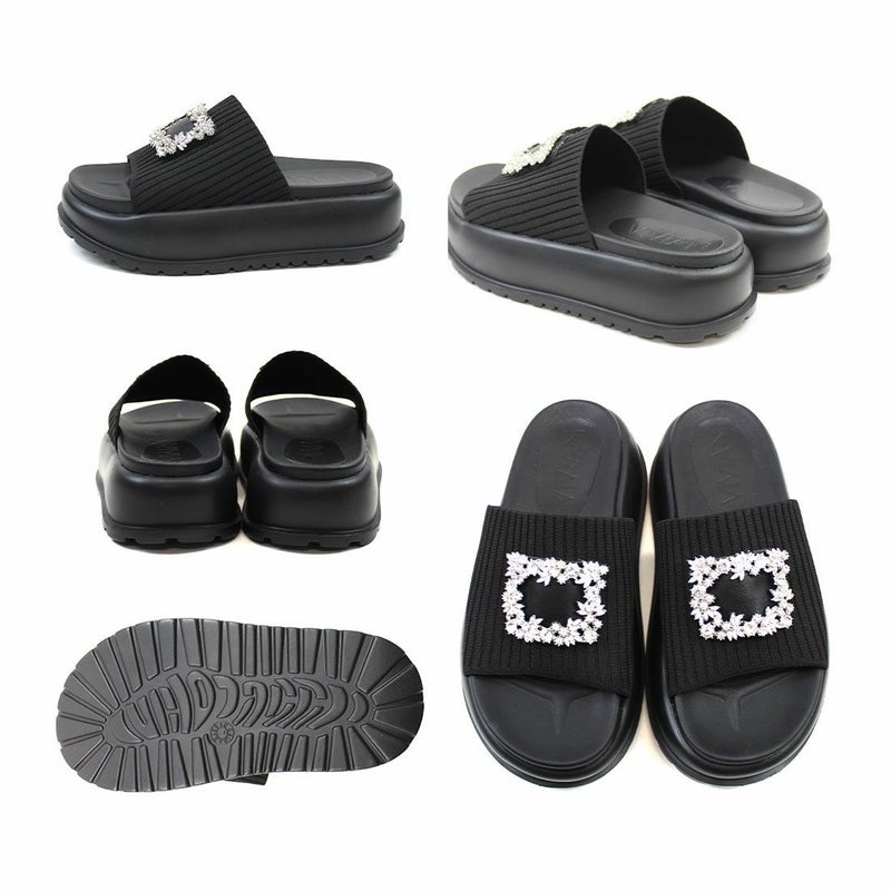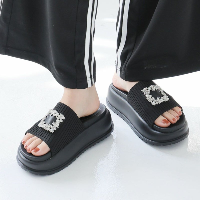 ・キラキラビジューバックルが輝くリブニットサンダル!