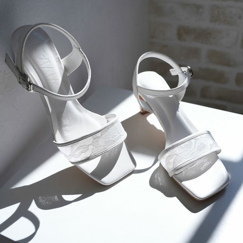 ・定番のアンクルストラップデザインもチュールで大人の抜け感漂う足元に!