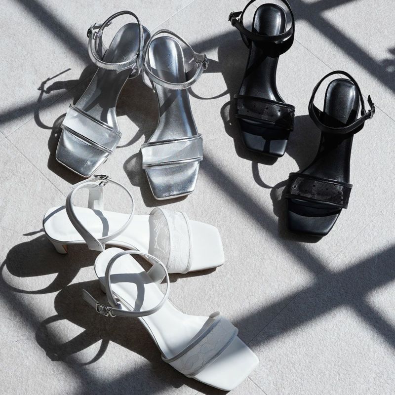 ・透け感のあるチュールが目を引くシアーストラップサンダル!