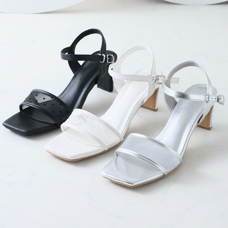・スクエアトゥ×プレートヒールでトレンドライクな美しいシルエット!