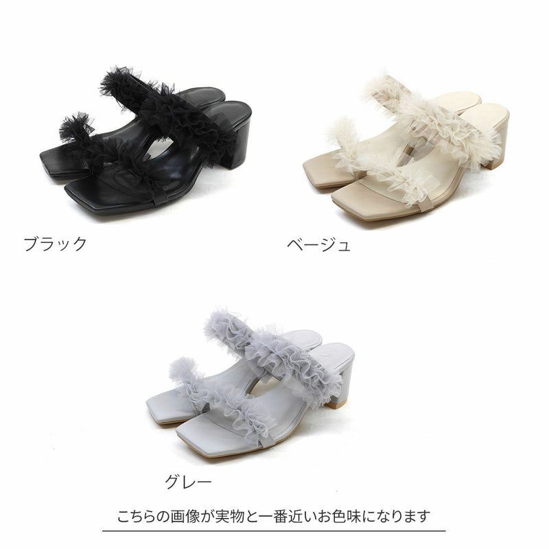 ・控え目ボリュームの大人チュールフリルサンダル!
