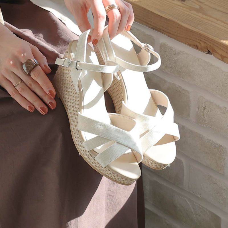 ・コーデを選ばない!クロスデザインがアクセントのウェッジサンダル