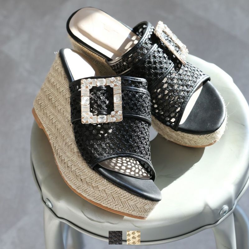 ・キラキラビジューバックルが輝く主役級アイテムのウェッジサンダル!